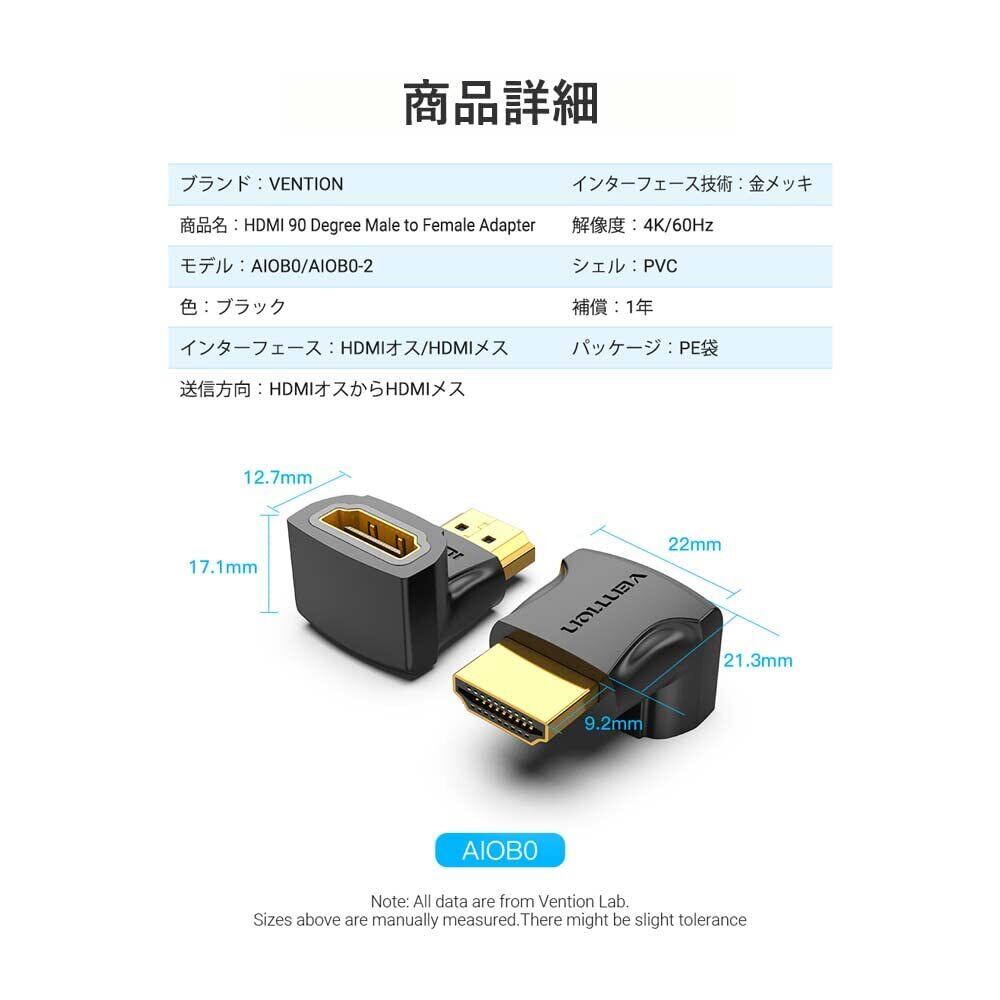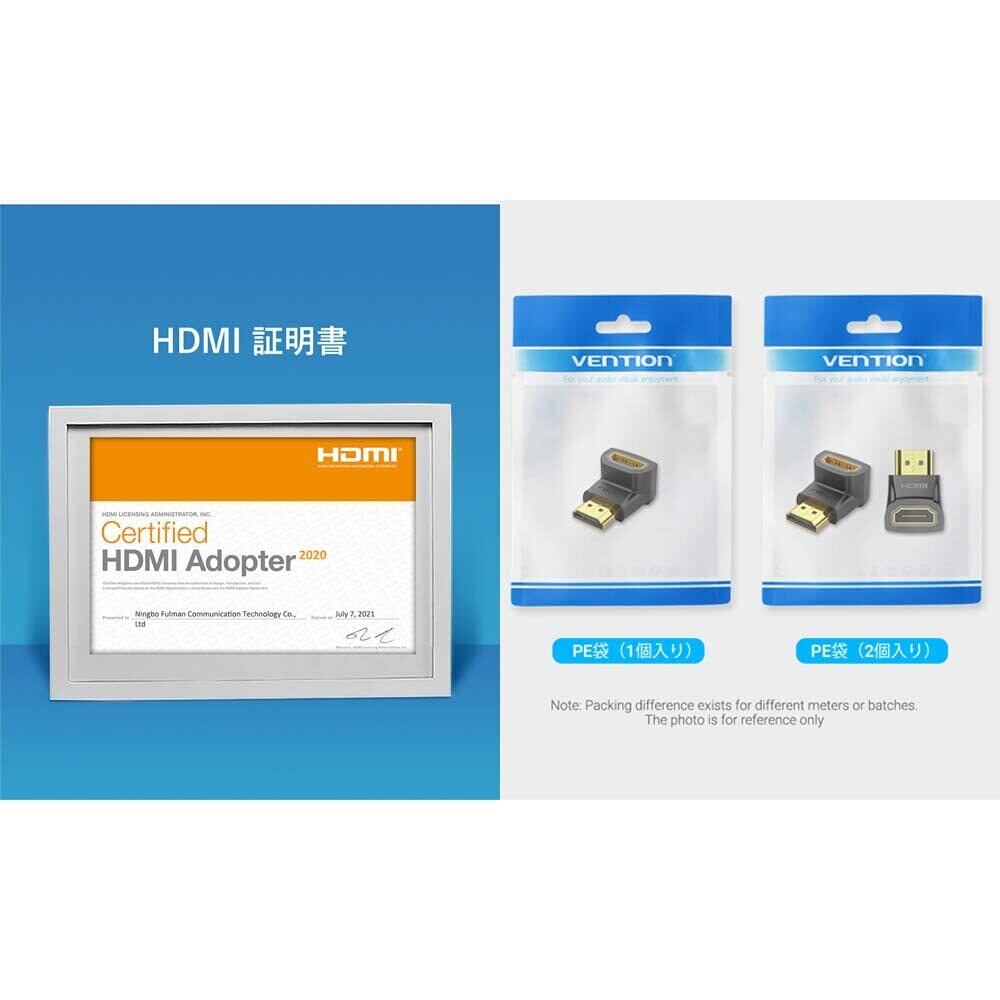 VENTION HDMI 90度 オス - メス 変換 アダプター L字 90度 4K/60Hz 3D スリム コネクタ 直角 HDMI延長アダプタ 狭い場所対応 (HDMIアダプター2個入り/AIOB0-2)