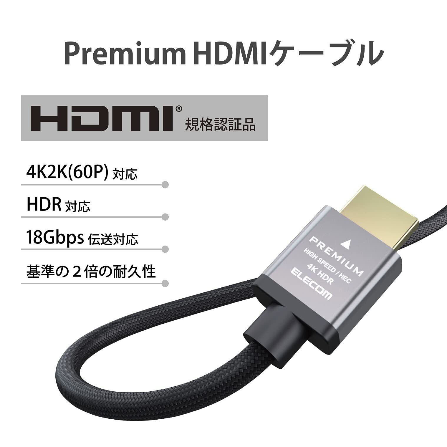 エレコム HDMI ケーブル プレミアム 曲げに強い ナイロンメッシュ 1m 4K・2K 【Premium HDMI(R) Cable規格認証済み】 アルミコネクタ 18Gbps ARC テレビ・パソコン・ゲーム機など対応 黒 ECDH-HDP10SBK