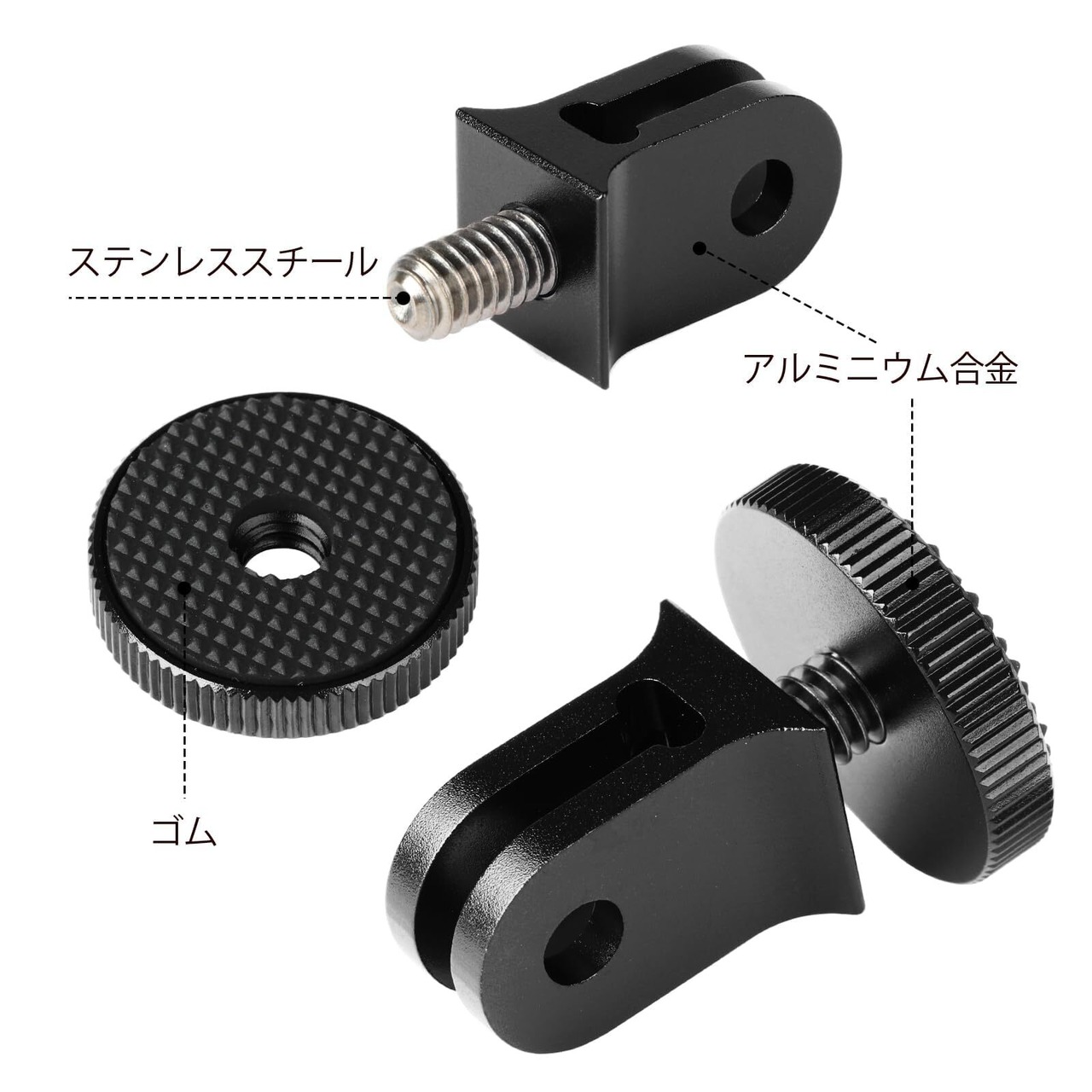 HSU アルミ変換アダプター ミニ三脚マウント 1/4トライポッドアダプター GoPro用(GP規格)→カメラネジ(1/4規格)に変換 (ブラック)