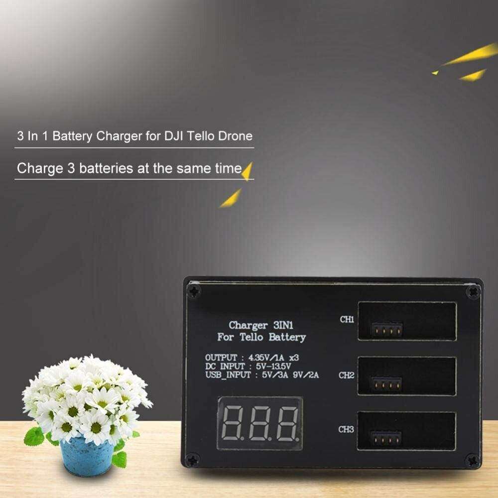 このインテリジェントなバッテリー充電ハブは Tello Drone用に設計されており、同時に3つのバッテリーを充電することができます。