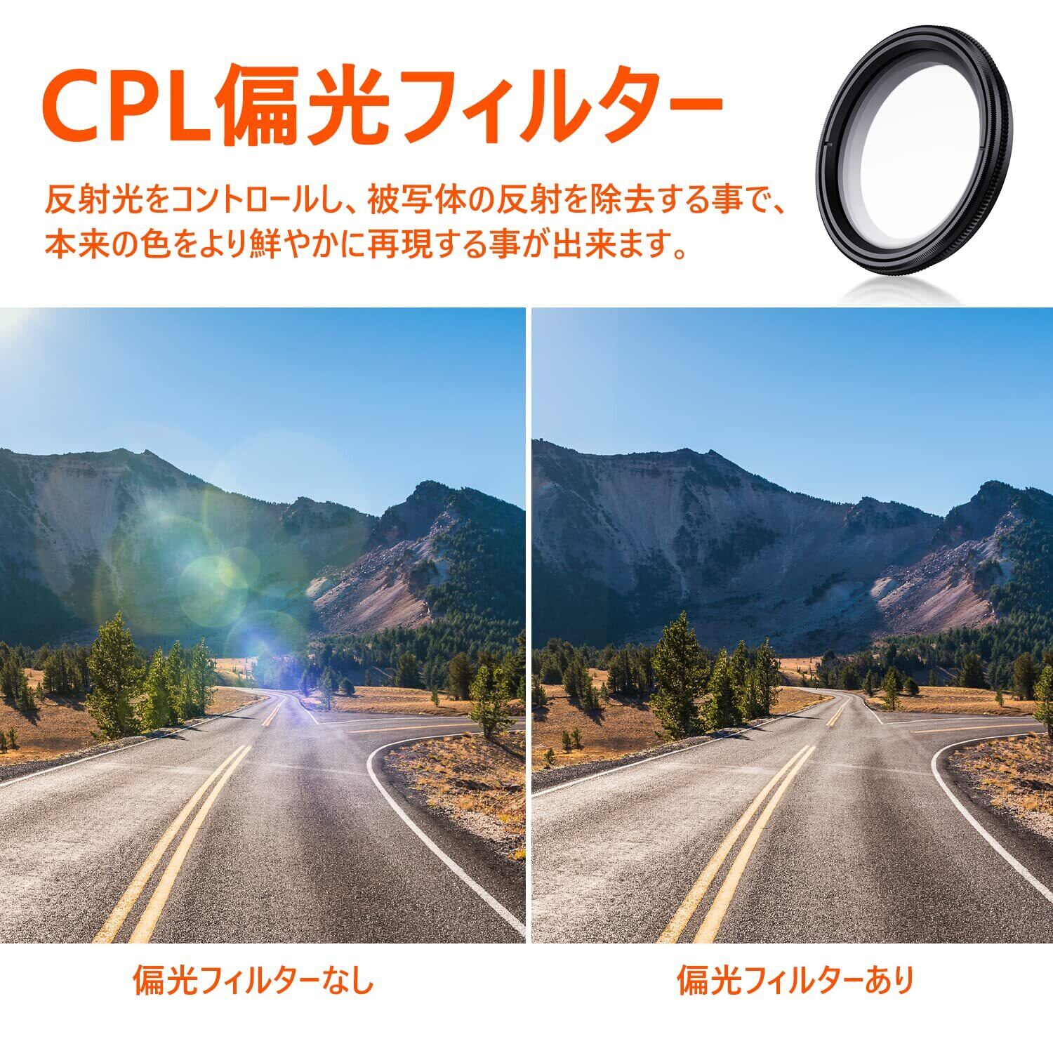 【使用方法】偏光フィルターを、カメラのレンズ部分にはめ込むだけで簡単に装着できます。CPLフィルターは回転させて使います。回転させた角度によって効果を調整します。