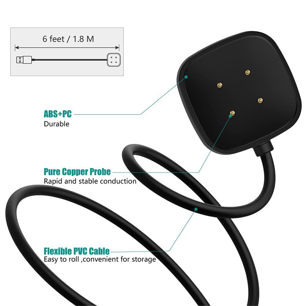 TUSITA 1.8M 充電ケーブル 対応 フィットビット Fitbit Sense 2, Sense/Versa 4, Versa 3 充電器 - USB 磁気充電 チャージングケーブル - スマートウォッチアクセサリ
