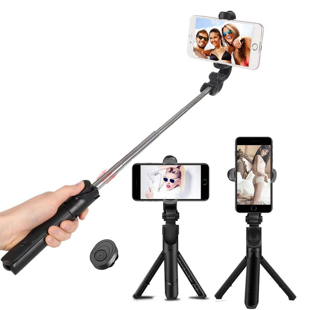 自撮り棒 bluetooth 無線 シャッターボタン付き スマホ セルカ棒 三脚/一脚兼用 コンパクト 軽量 AndroidやiPhone対応 他のほとんどのスマホにも対応可能 携帯便利 リモコン付き (黒)