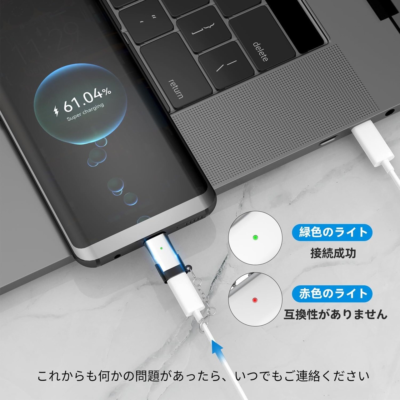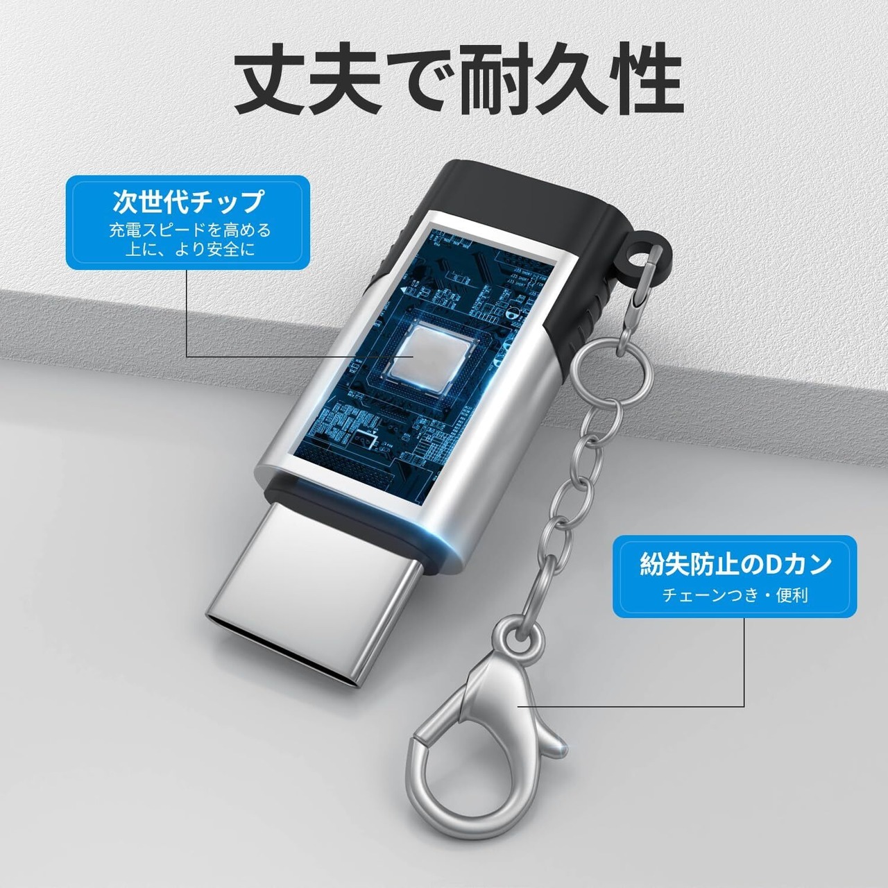 【ケーブルなし・紛失防止】わずか5gの軽量なライトニング タイプc 変換アダプタは、メタルのチェーン付きでいつでも携帯でき、紛失の心配がありません。ライトニング タイプc 変換アダプタは断線の心配もなく、コンパクトな設計で持ち運びに便利です。