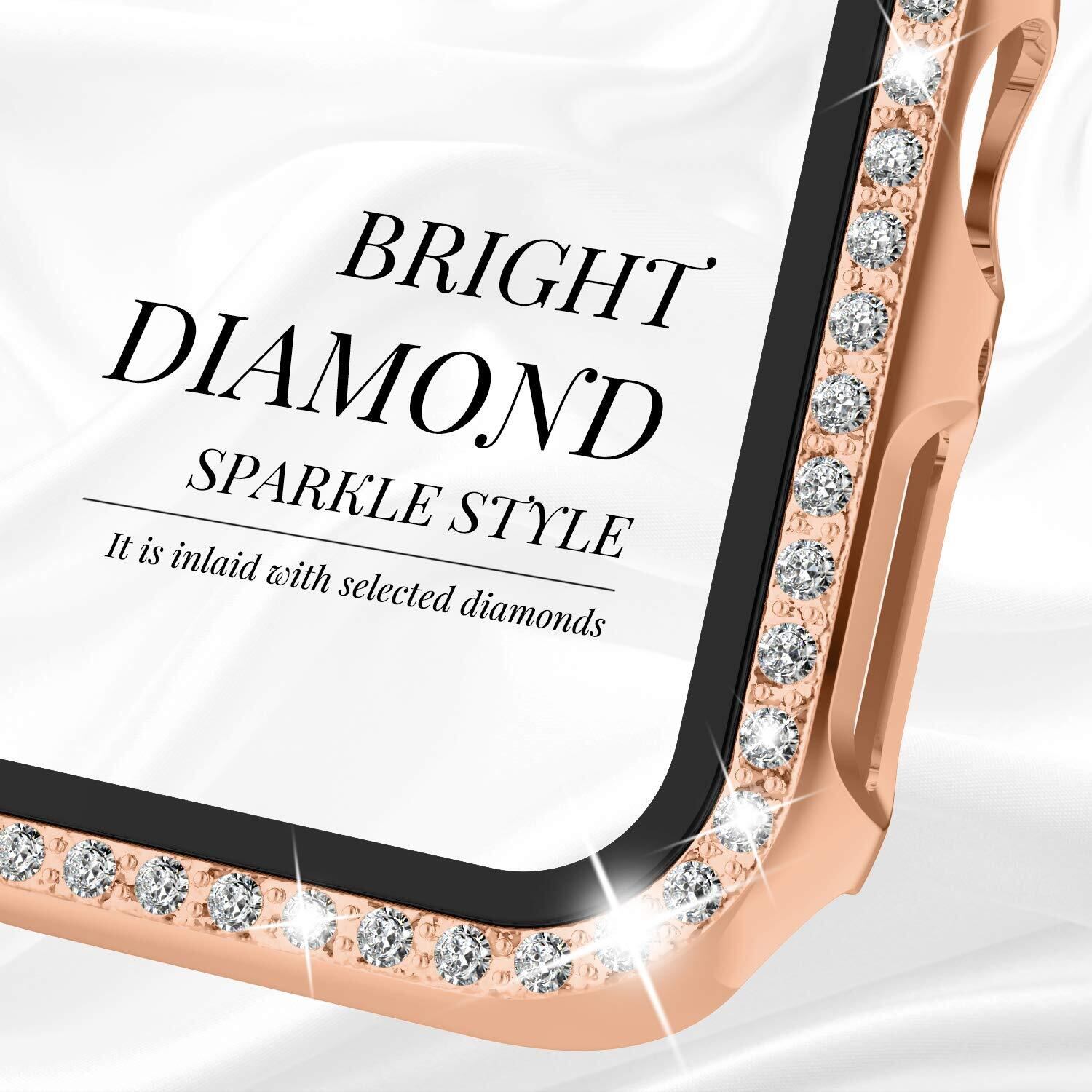 【キラキラカバー】WASPO コンパチブル iWatchケース 40mm 保護フィルム付き クリスタルダイヤ付き アップルウォッチカバー 女性専用 全面保護ケース(40mm Series se/6/5/4,ローズゴールド)