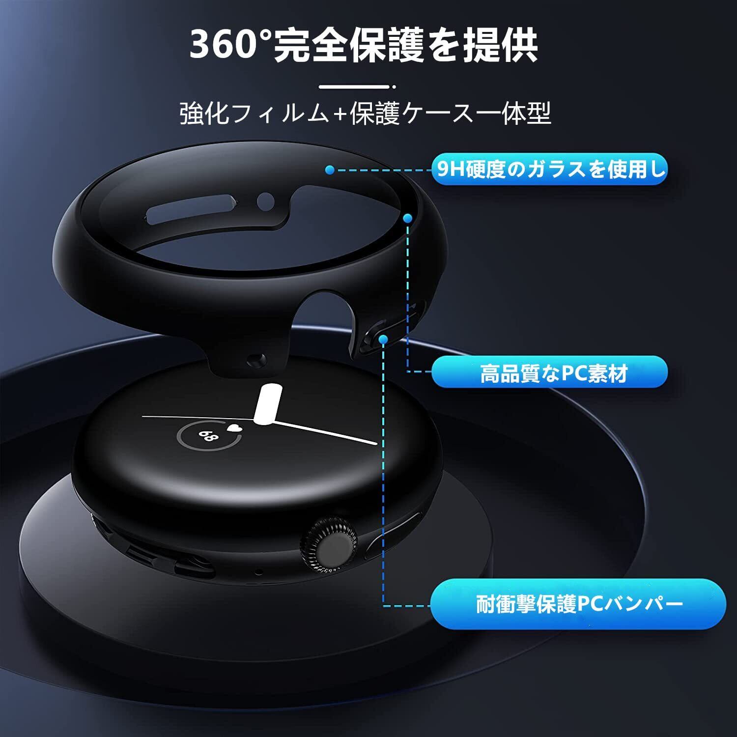 Google Pixel Watch 2/Pixel Watch 1 用 ケース 保護 ガラスフィルム 一体型 PC+TPE材質 二重構造 全面保護 超薄型 高耐久 装着簡単 耐衝撃 対応 Google Pixel Watch 2/1保護ケース 高透過率 指紋防止 傷防止 グーグルピクセルウォッチ カバー (黒)