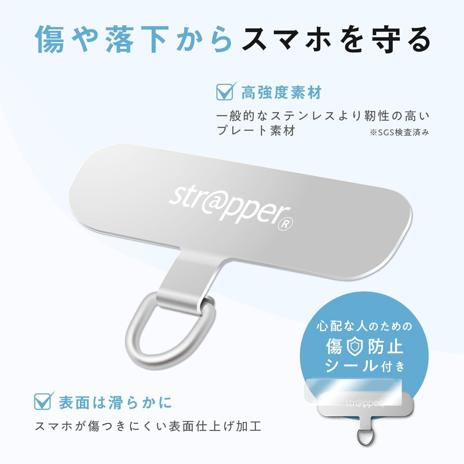 【マットで上品な質感のステンレス製スマホストラップホルダー】ストラッパーはマットで落ち着いた光沢感がスマホの色とぴったりマッチするストラップホルダーです。金属製で切れない/ちぎれないのでスマホ落下防止対策にもぴったりです。