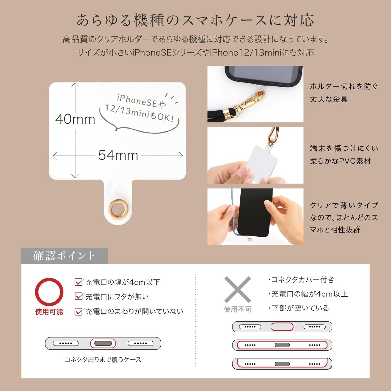 ▶▶▶【セット内容】ストラップ(紐)×1、ストラップホルダー×1【ストラップ仕様】カラー:グレイッシュベージュ紐とゴールド金具、ストラップの長さ:約75cm、ホルダーのサイズ(透明シート):約W54mm×H40mm×D0.7mm、耐荷重:3kgまで対応。miniサイズからビッグサイズまで、男女兼用ですべてのスマートフォンに対応したサイズとなっております。