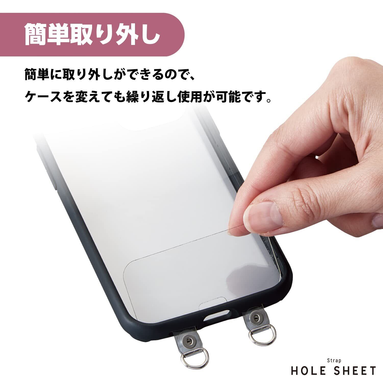 ■スマートフォンとケースの間に挟むだけでストラップホールを追加できる、2口タイプのストラップホールシートです。