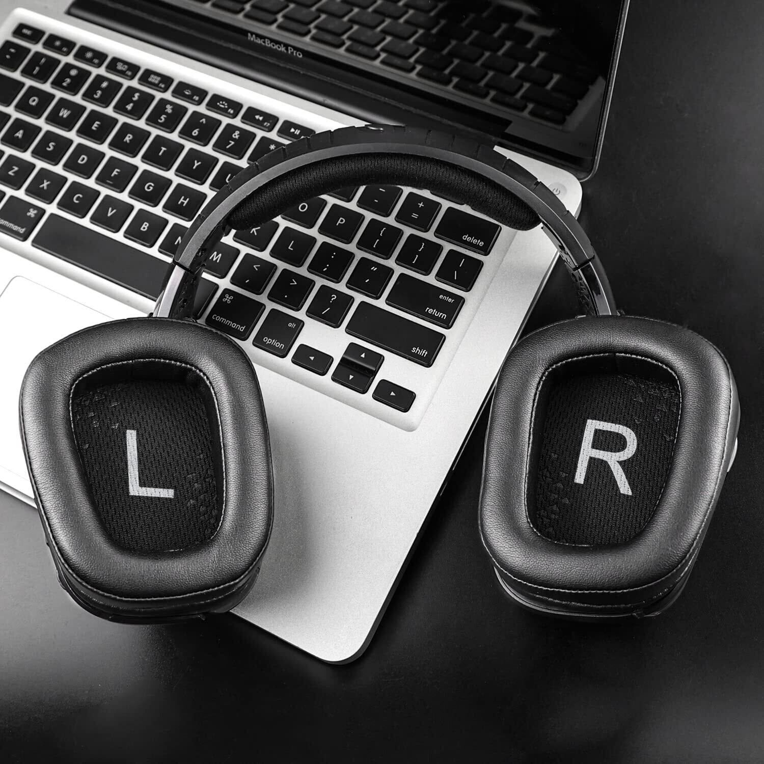 SOULWIT イヤーパッド イヤークッション for Logicool G35 G930 G933 G933S G935 G633 G633S G635 G533 G430 G431 G432 G433 G332 G230 G231 G233 用 交換パッド ノイズアイソレーションフォーム プロテインレザー ブラック