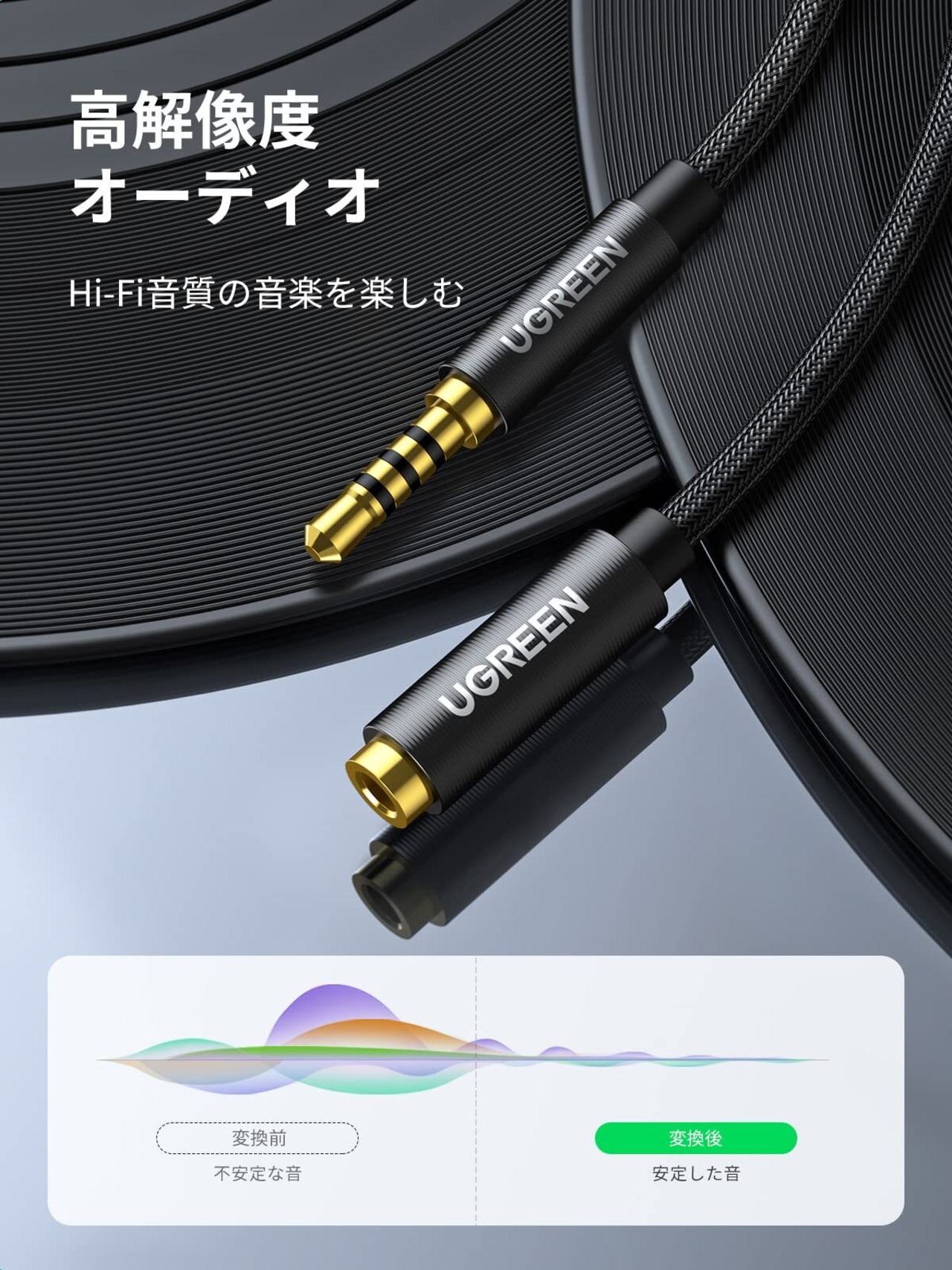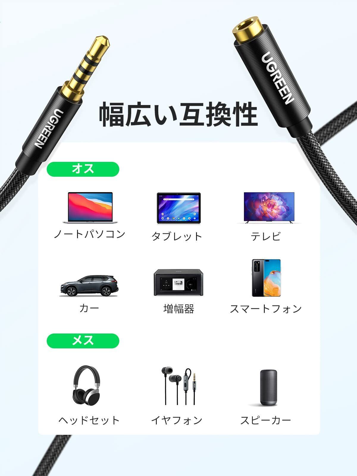 【数量限定】UGREEN イヤホン 延長コード 3.5mm オーディオケーブル 4極/TRRS ナイロン編み AUX ヘッドホン Hi-Fi音質 多重シールド 24K金メッキ スマホ/Android/iPhone/PC/TV/モニター/ヘッドホン/イヤホン/PS4/MP3/スピーカーに対応【1M】 | ニコニコSHOP