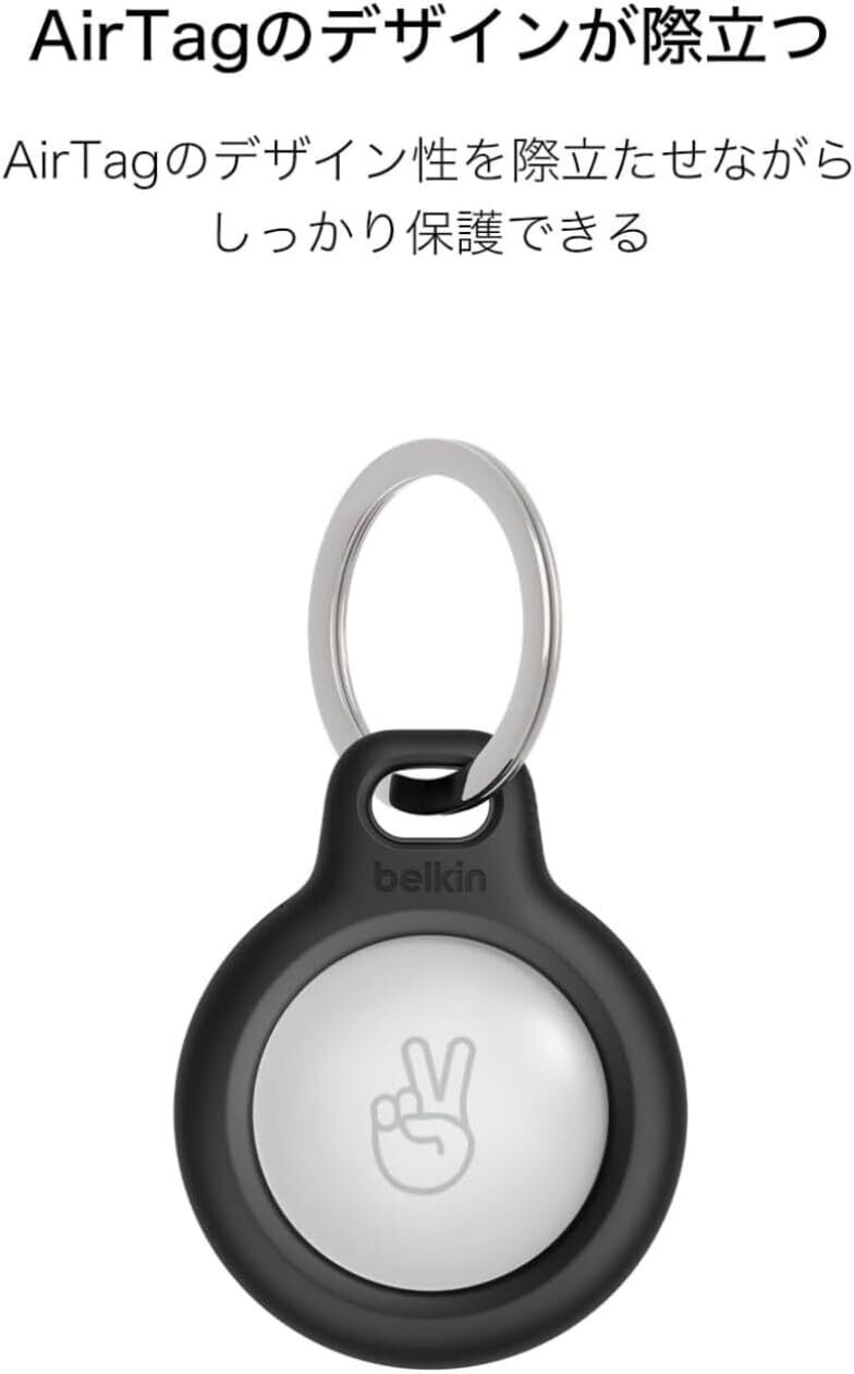 【Apple公認】Belkin AirTagケース 保護カバー 防水 自転車 財布 子供 安全 紛失防止 盗難防止 傷防止 犬 猫 キーホルダー キーリング ブラック F8W973btBLK