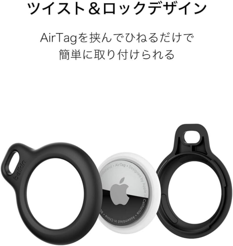 AirTagを挟んで捻るだけで簡単に取り付け可能な、ツイスト&ロックデザインを採用