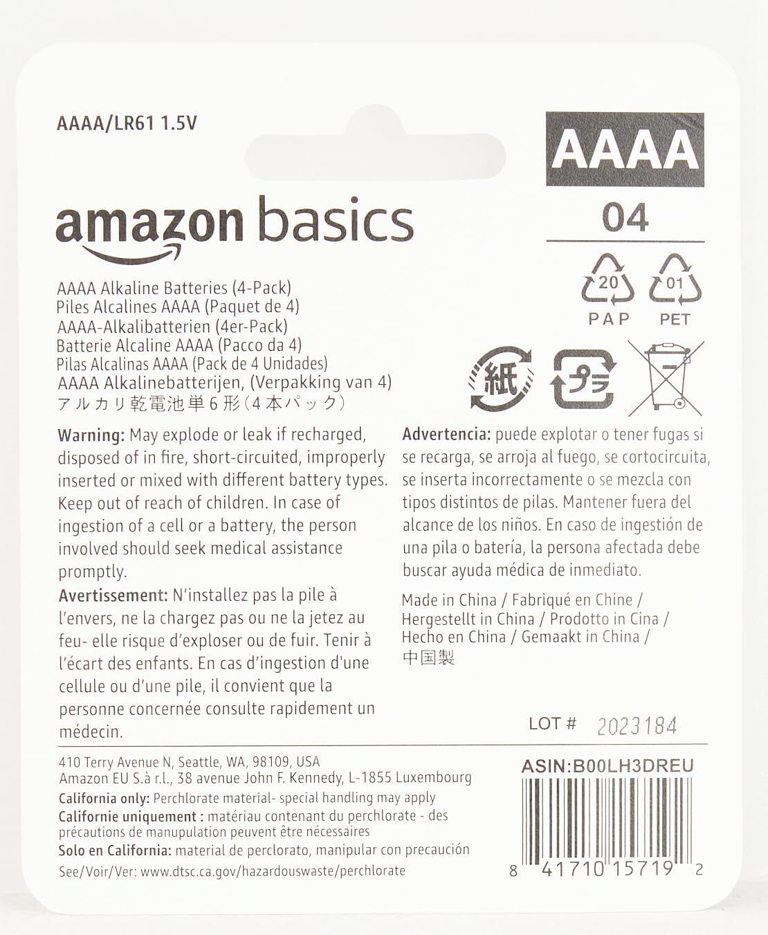 Amazonベーシック 乾電池 単6形 アルカリ 4個セット
