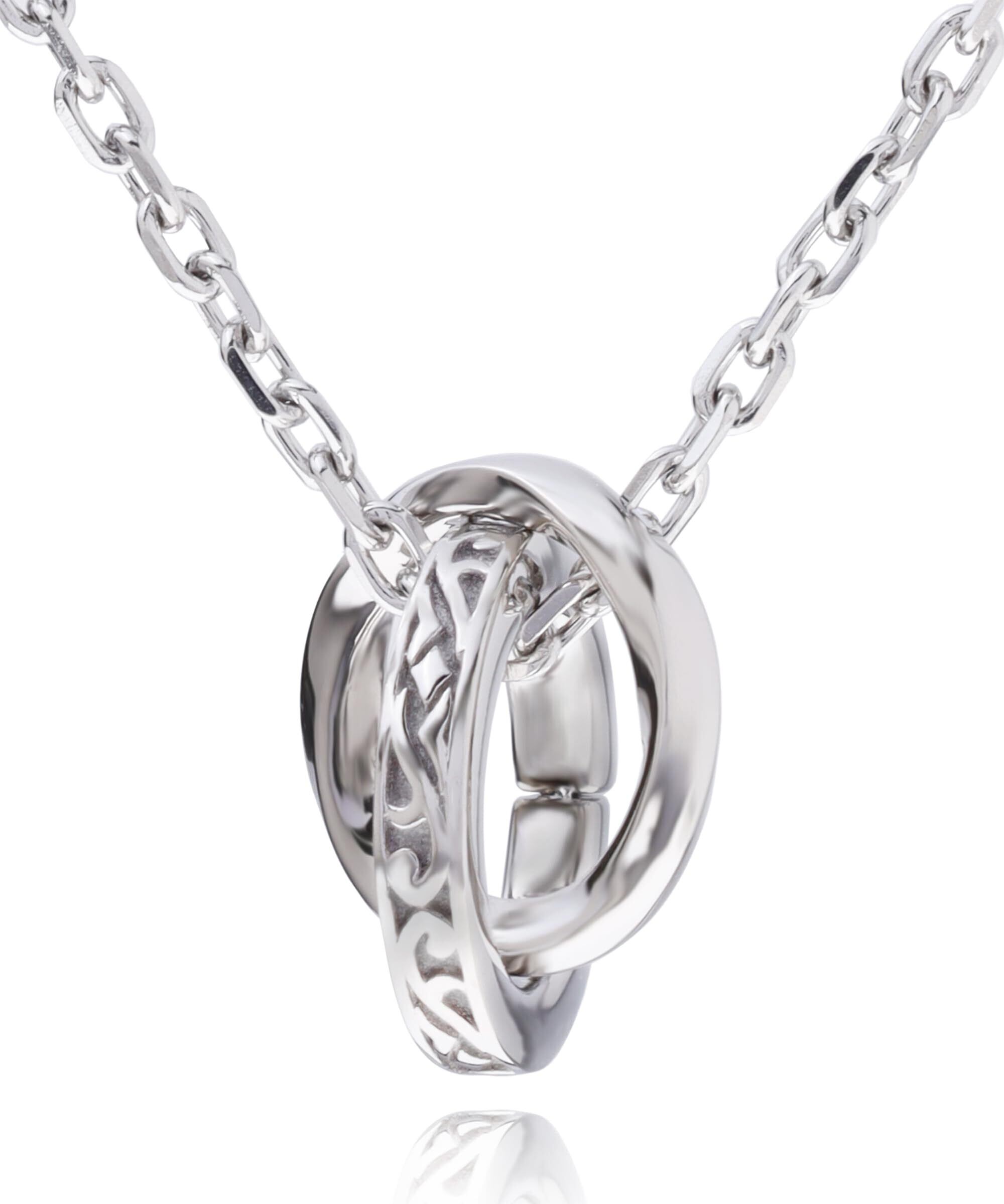 【"タテガミ"の彫りがアクセントのダブルリングネックレス】ブランドの象徴であるライオンの「タテガミ」を落とし込んだリングと柔らかくツイストしたリングを組み合わせました。