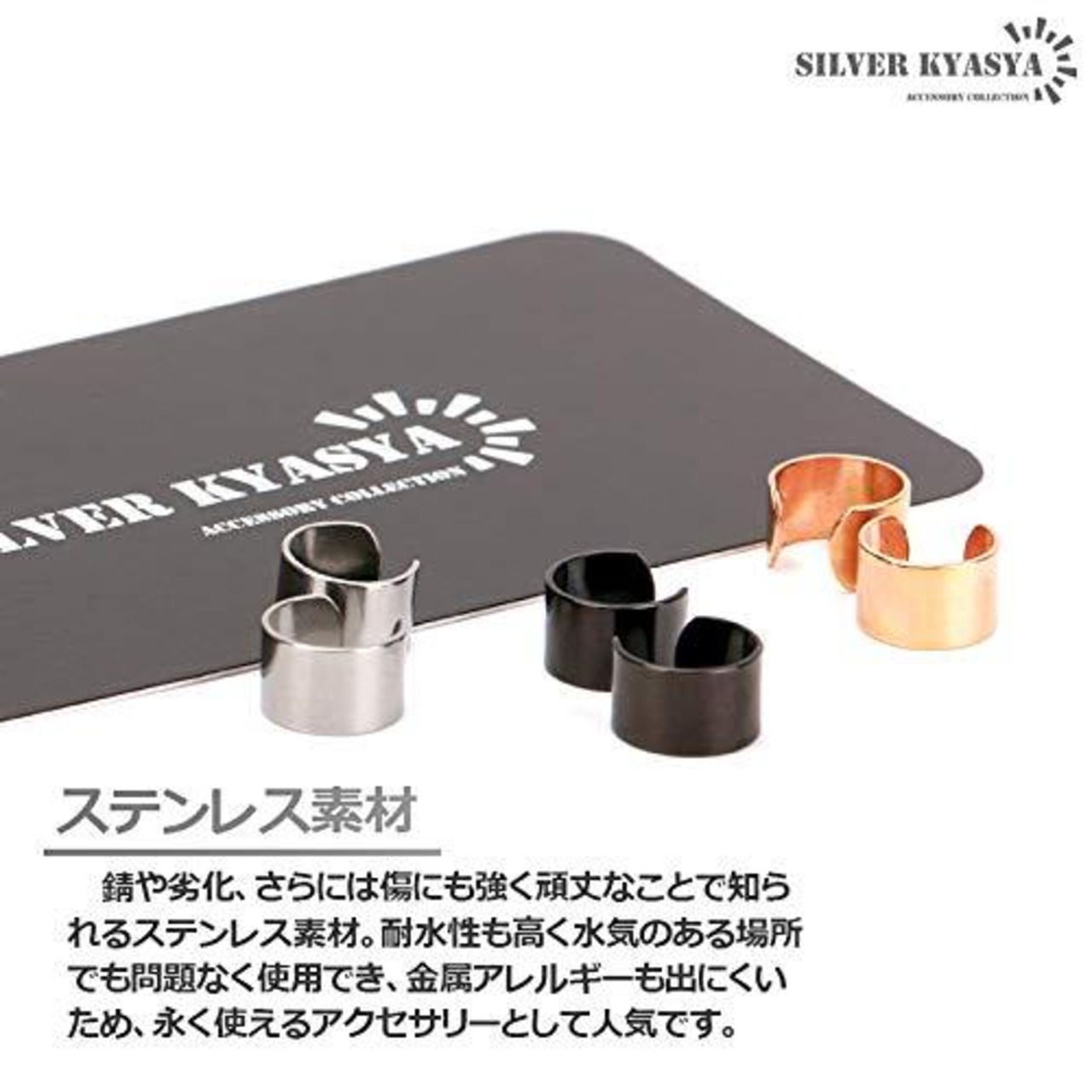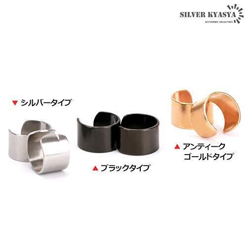 [silver KYASYA]両耳用2点セット シンプルイヤーカフ メンズ レディース ステンレス シルバー ブラック 小ぶり ゴールド 男性 挟むだけ silver 耳の穴不要 金属アレルギー対応