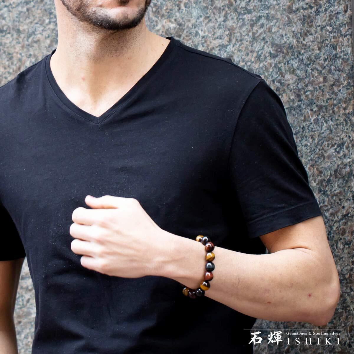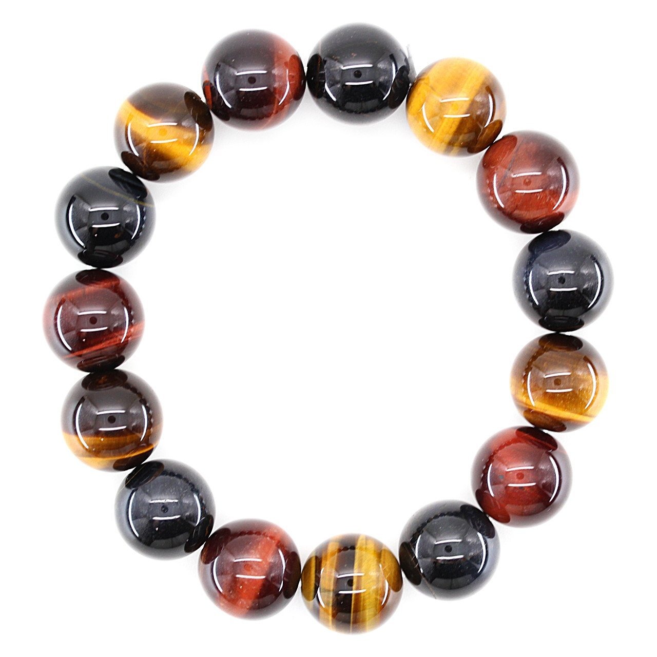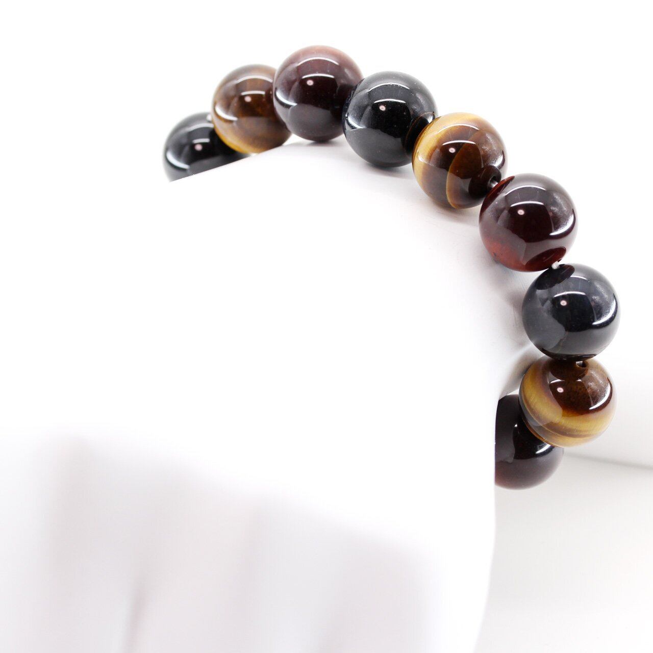 石輝 AAAAランク天然石3色ミックスタイガーアイ14mm数珠ブレスレットパワーストーン 金運・仕事運・財運 オリジナル巾着袋付き[b187]