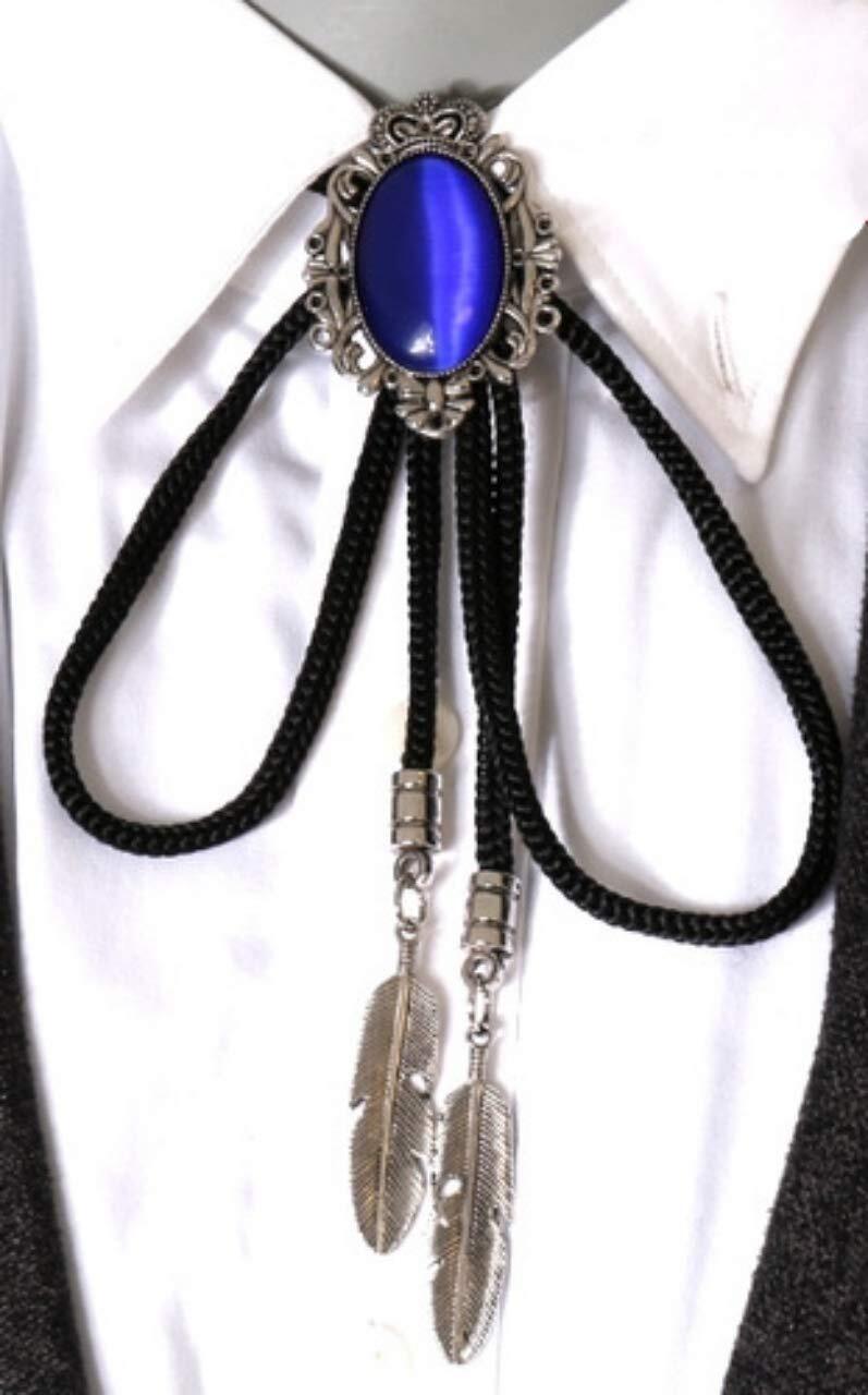 [ブブ オーハナ] ループタイ ポロ ボロ ロープ タイ ネクタイ 簡単装着 ワンタッチネクタイ メンズ (青)