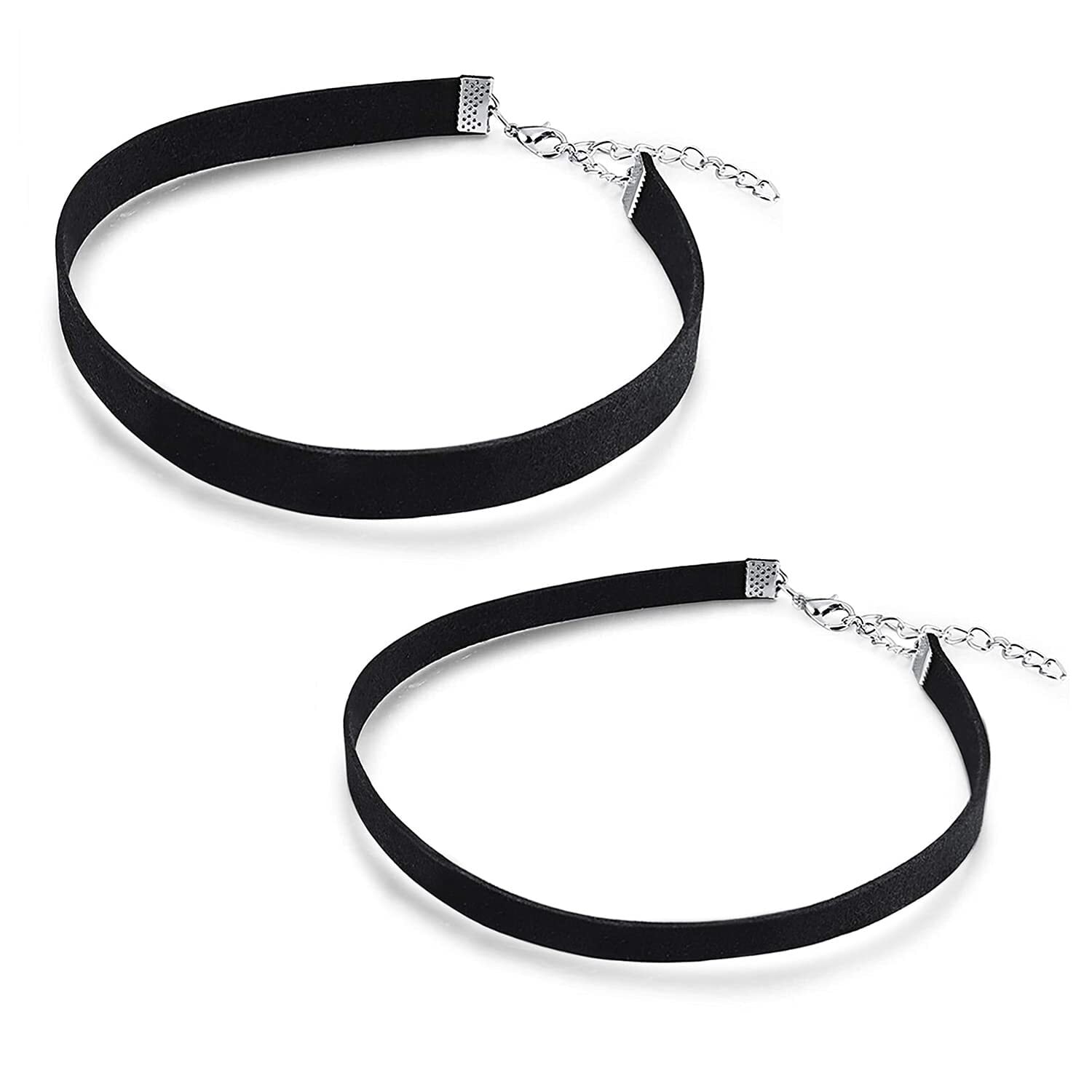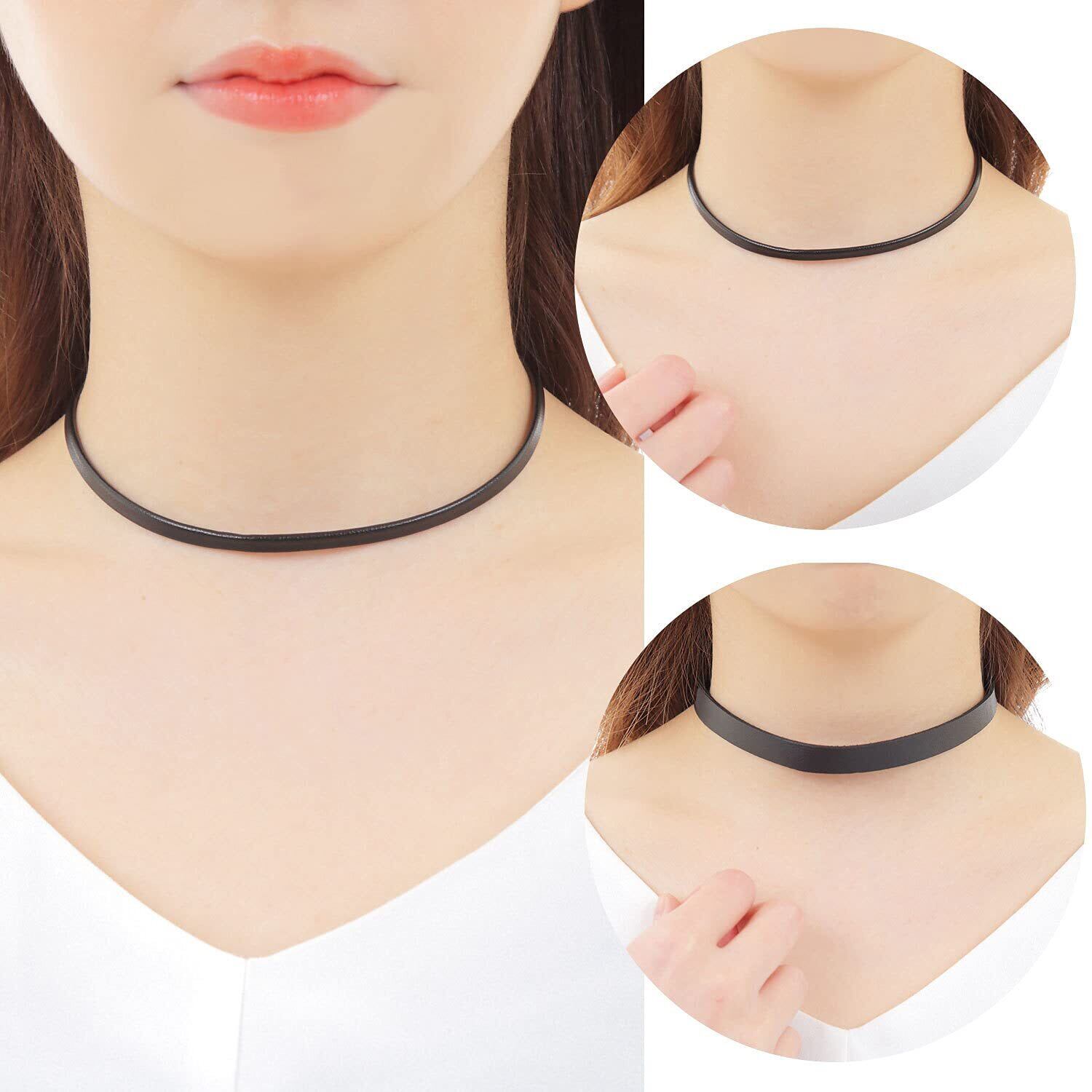 幅:0.5cm〜1cm、長さ:約31〜38cm。材質:フェイクレザー (ブランド:ZEMUS、商品名:シンプル チョーカー 黒 レディース 2個セット)