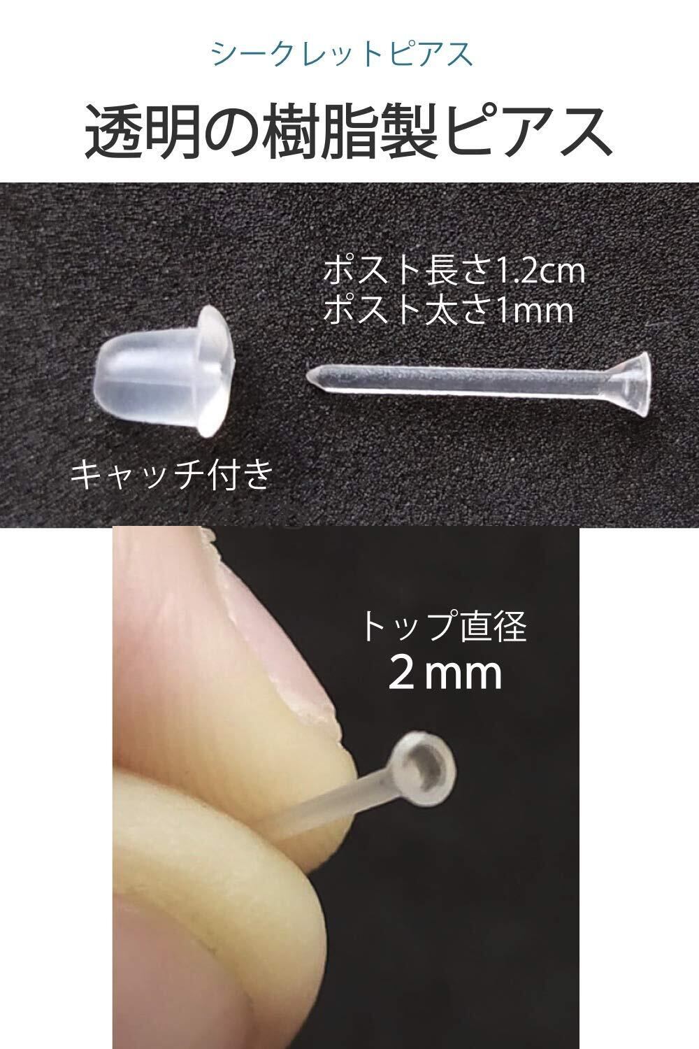 透明樹脂製のピアスとキャッチ トップ直径2mmなので目立ちにくい ピアス禁止の学校や職場、バイトに 左右10組セット(20個)