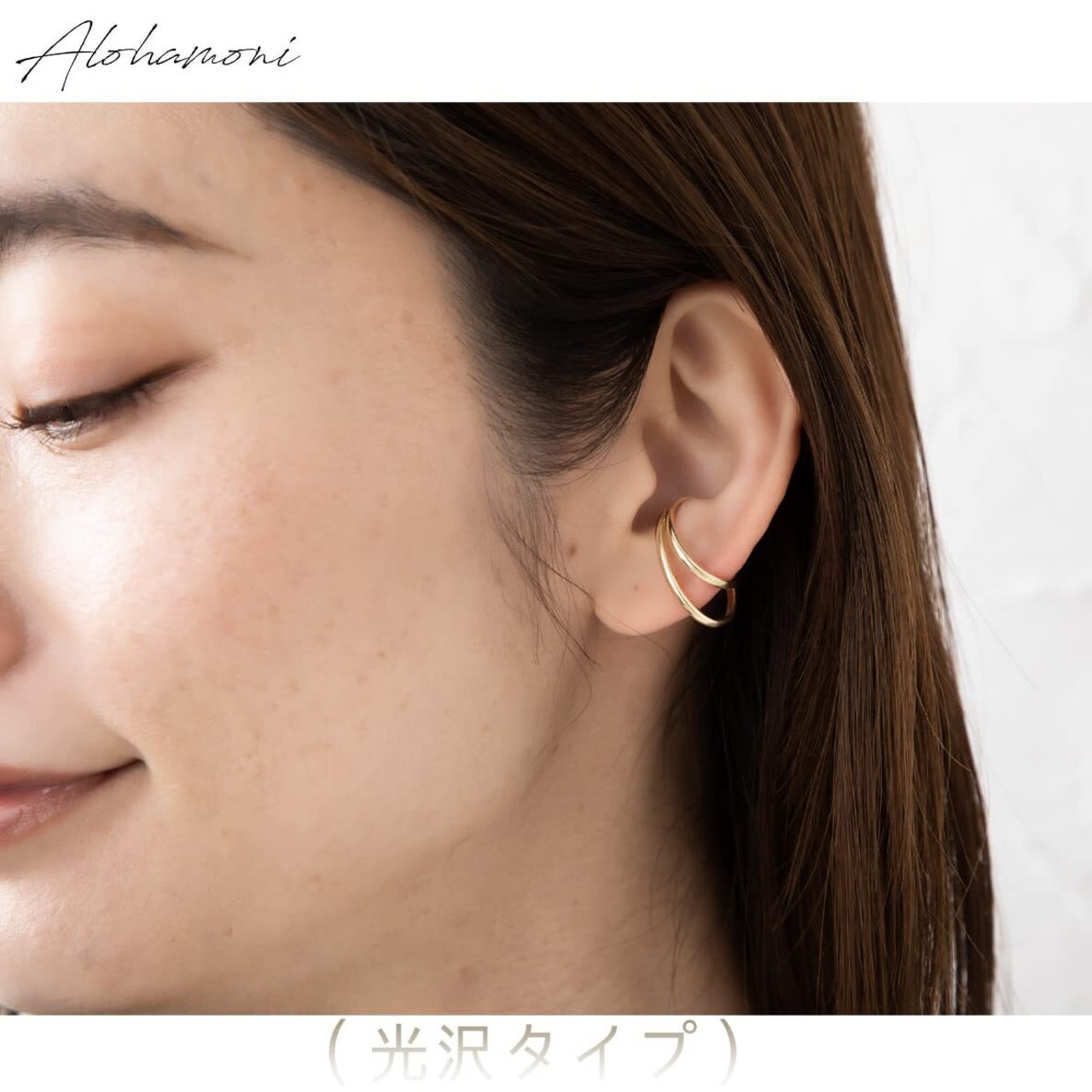 【デザイン】ダブルラインのフープがかわいい人気デザインのイヤーカフです 光沢のある質感と、マットな質感の2種類からお選び頂けます