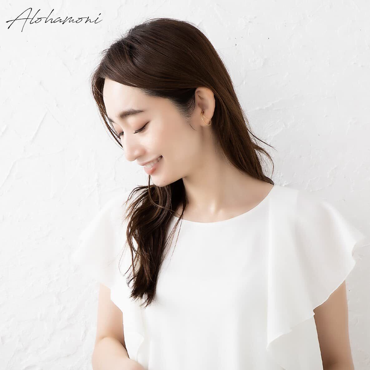 つける位置も自由自在、重ね付けが楽しめます 左右それぞれに着けても、片耳に2つ重ね付けしてもかわいいです フックタイプは軟骨と耳たぶにひっかけるので落ちにくいです