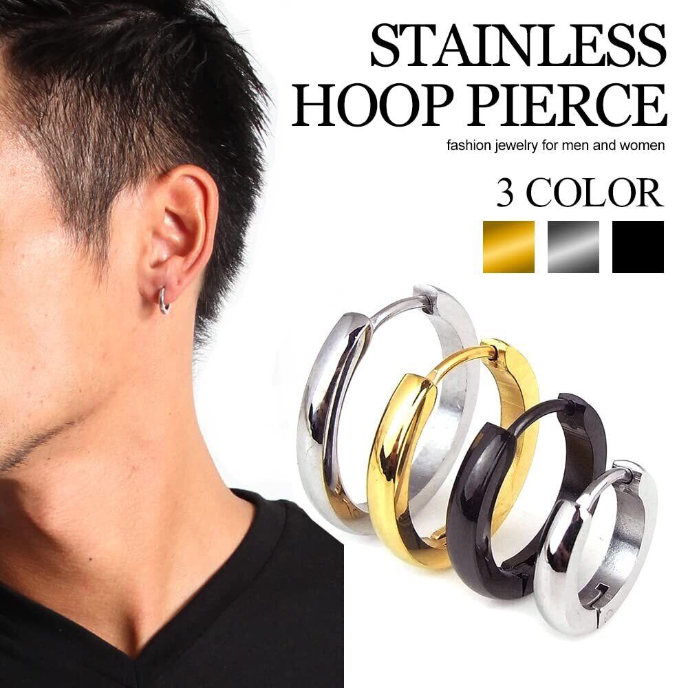 定番中の定番ともいえるステンレス製シンプルフープピアス!ロングセラーのリング型中折れフープピアスで、誰でもどんなコーディネートスタイルにも使える人気ブランドアクセサリー!普段使いに最適なので、どんな時にもつけっぱなしで使えるのが最大のメリット!ピアス穴がいくつも空いている人ならサイズ違いを複数付けてもオシャレで問題なし!カラーバリエーションはシルバー、ゴールド、ブラック、ピンクゴールドの4色展開でサイズは各大から小まで豊富に取り揃えております。輪っかのサイズも豊富に取り揃えましたので、メンズもレディースもお好きなサイズを選択して下さい。若者に人気の韓国系ストリートファッションの相性抜群で、これは外せない1つは必ず持っておきたいピアス!BTSのブイ テテ ジミン 登坂広臣などのファンにはたまらないとてもかっこいいわっか型フープピアス!