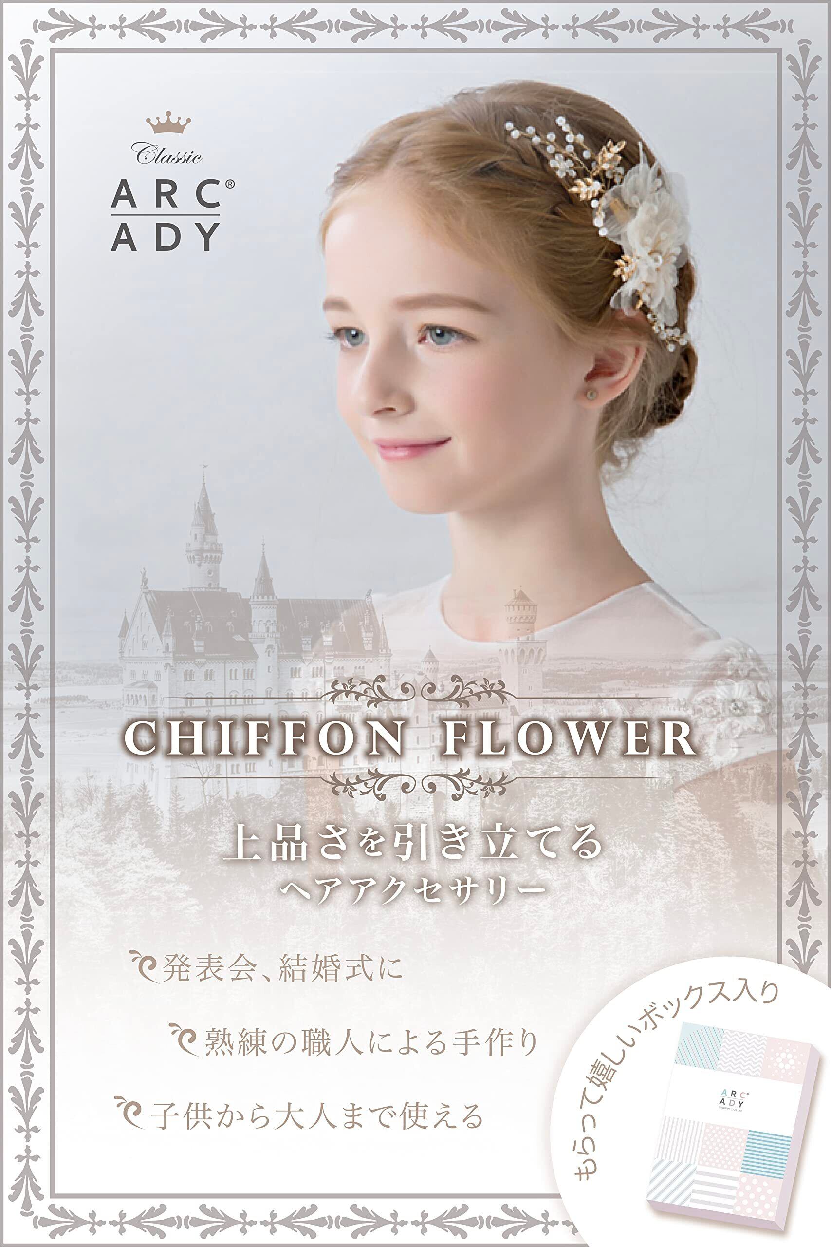 ヘアアクセサリー 髪飾り ボックス入り 発表会 結婚式 [ARCADY] 子供 大人も使える 職人の手作り ヘッドドレス (シフォンフラワー)