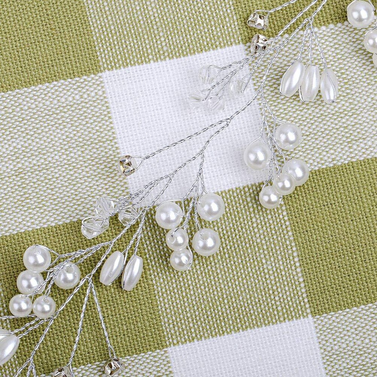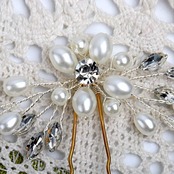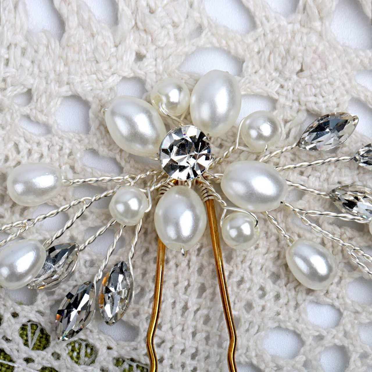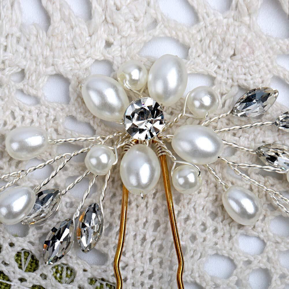 【素材構成】:人工真珠+ラインストーン+合金+アクリル。キラキラして眩しいラインストーンとほんの真珠ようなフェイクパールは、女性らしい気質を引き立てる、立体感あふれる上品でかわいいヘアアクセサリーです。