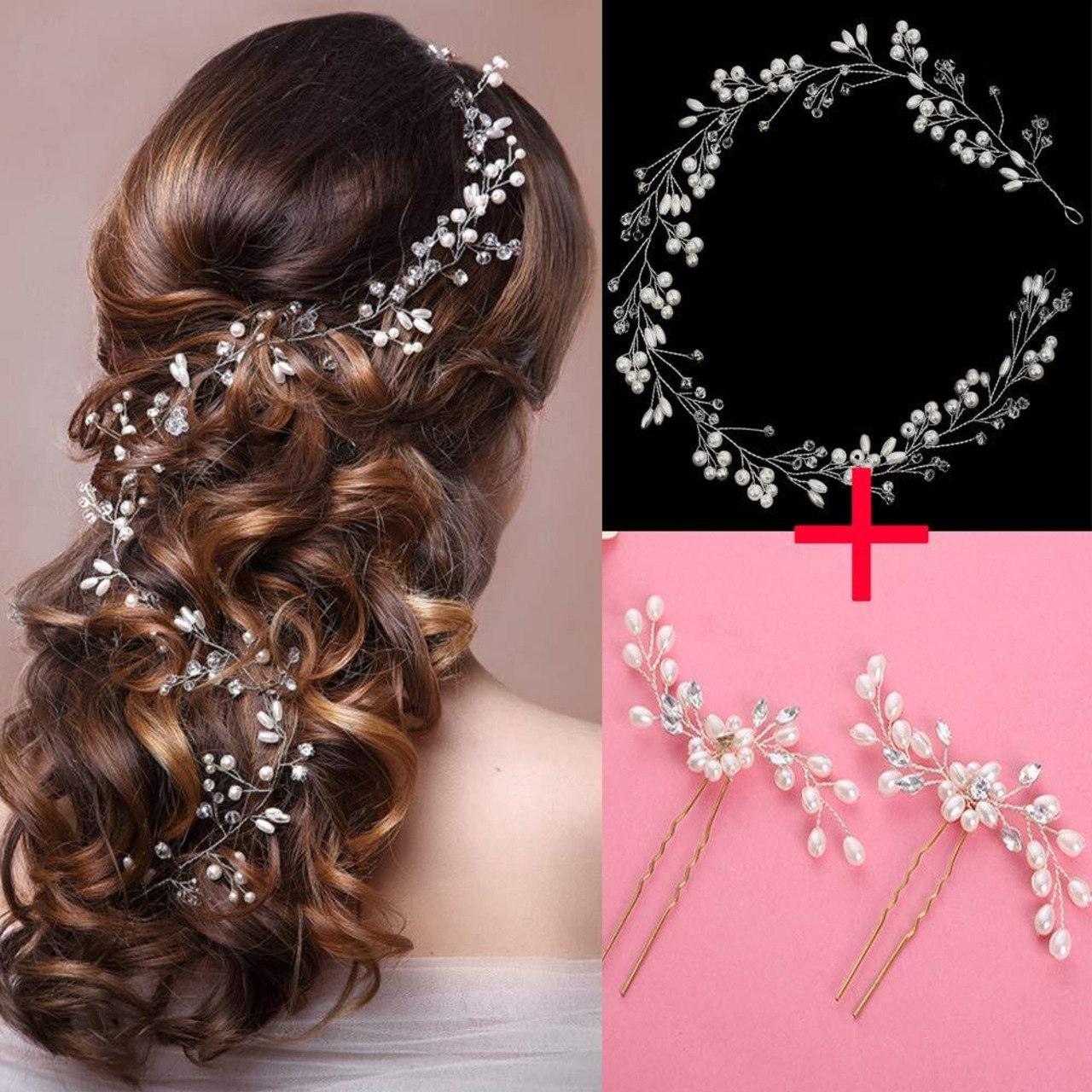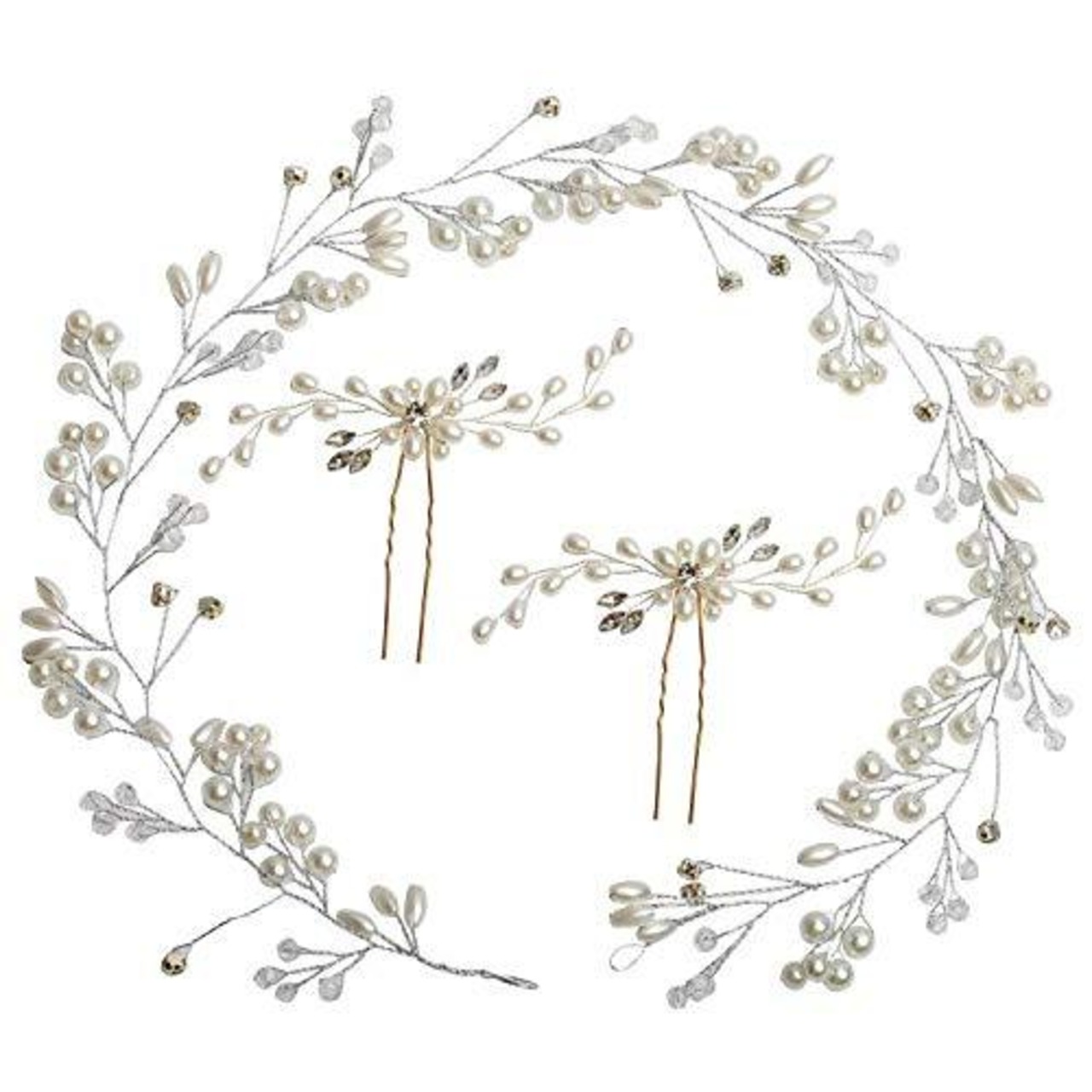 STL ヘッドドレス ウェディング 髪飾り 花嫁 カチューシャ ヘアピン パール ラインストーン ブライダルティアラ Uピン かんざし 髪留め ヘアクリップ ヘアアクセサリー 結婚式 披露宴 二次会 卒業式 入学式 パーティー ダンス 和装 撮影 (カチューシャ+2ヘアピン タイプA)