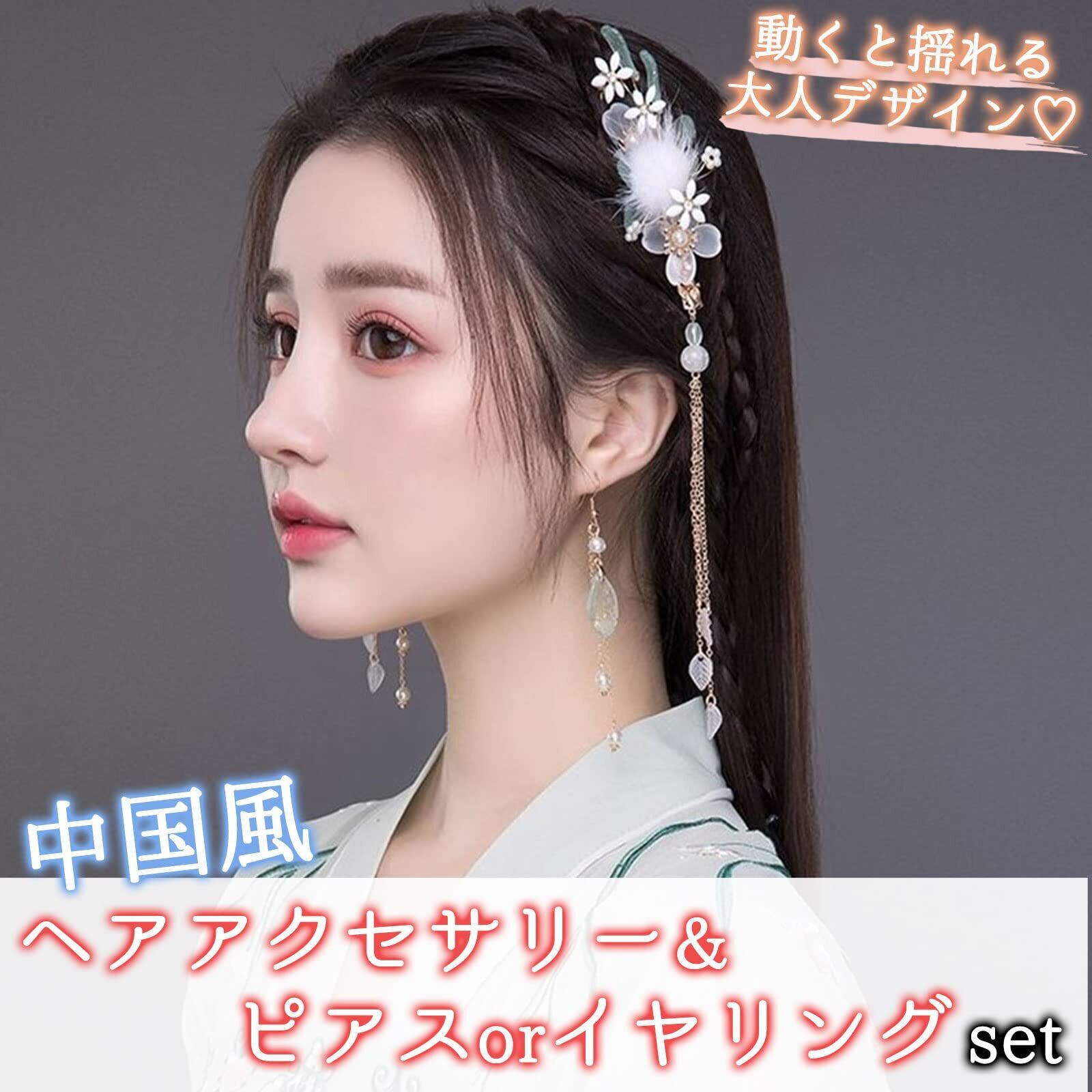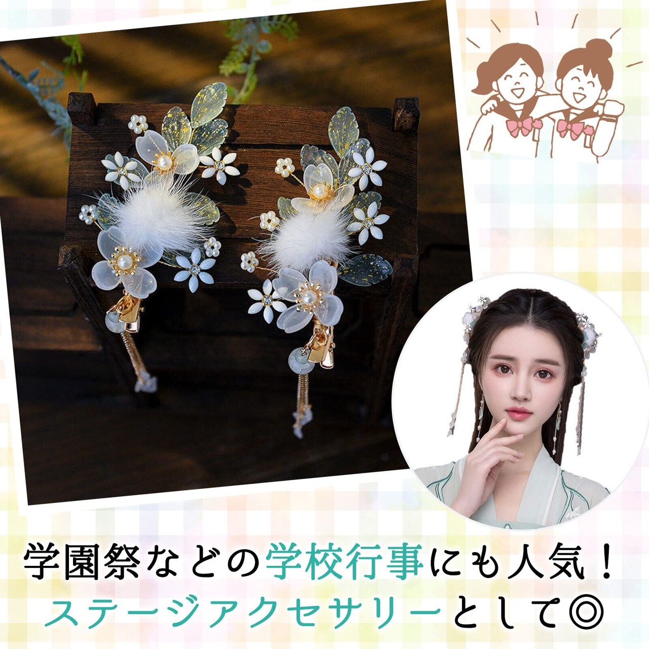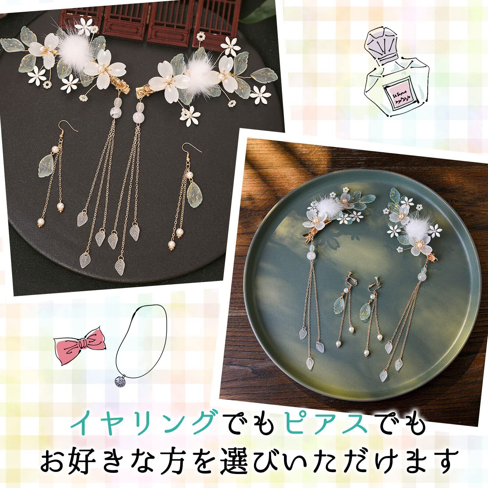 [KAMIRI] チャイナ 髪飾り ヘアアクセサリー ピアス 漢服 ゴールド ヘッドドレス (白花ピアス)