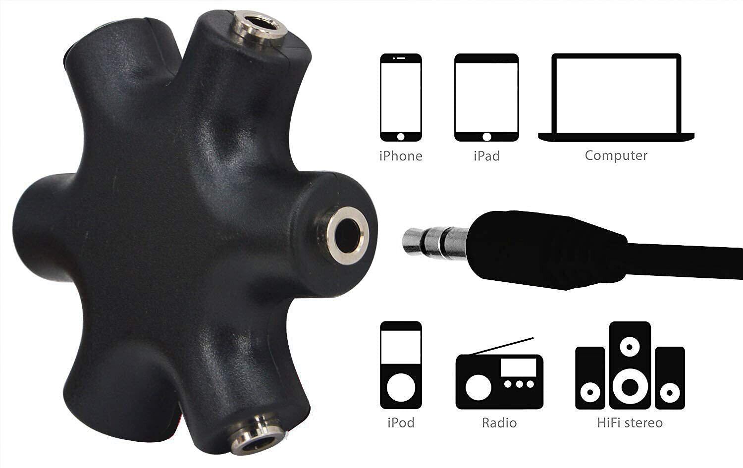 【特価商品】leeyovk マルチイヤホンスプリッター 3.5mmイヤフォンジャック分配器 イヤホン分配/分岐 3.5オーディオ5出力6端子メス接続器 オーディオイヤフォンプラグ 3.5mmステレオ延長線付き (黒)スマートフォン・ゲーム機・音楽機器対応 | ニコニコSHOP