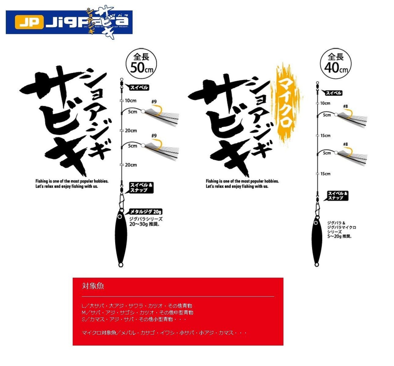 ショアジギングにサビキ仕掛けをプラス。青物ついでにアジやサバも狙うなら「ショアジギさびき」、マイクロジグで更に多くの魚をゲットできる「マイクロさびき」と狙いに応じたラインナップ。「ジグなし(仕掛けのみ)6サイズ」「ジグ入りセット6サイズ」の2種展開。欲張りアングラーには欠かせないアイテムです。初めてのショアジグでリーダーが結べない方でも、スイベルに直接PEを結べば「ショアジグサビキ」が楽しめるのでお勧めです。