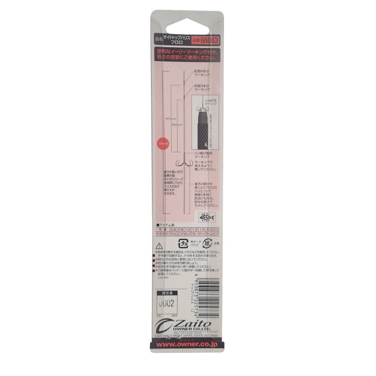 OWNER/オーナーザイト・鮎トップハリス フロロ ■入り数:80本フロロだから高感度。マーキングでは号数ごとに色を変えていますので、ケースから取り出してもマーキングの色で号数を確認できます。