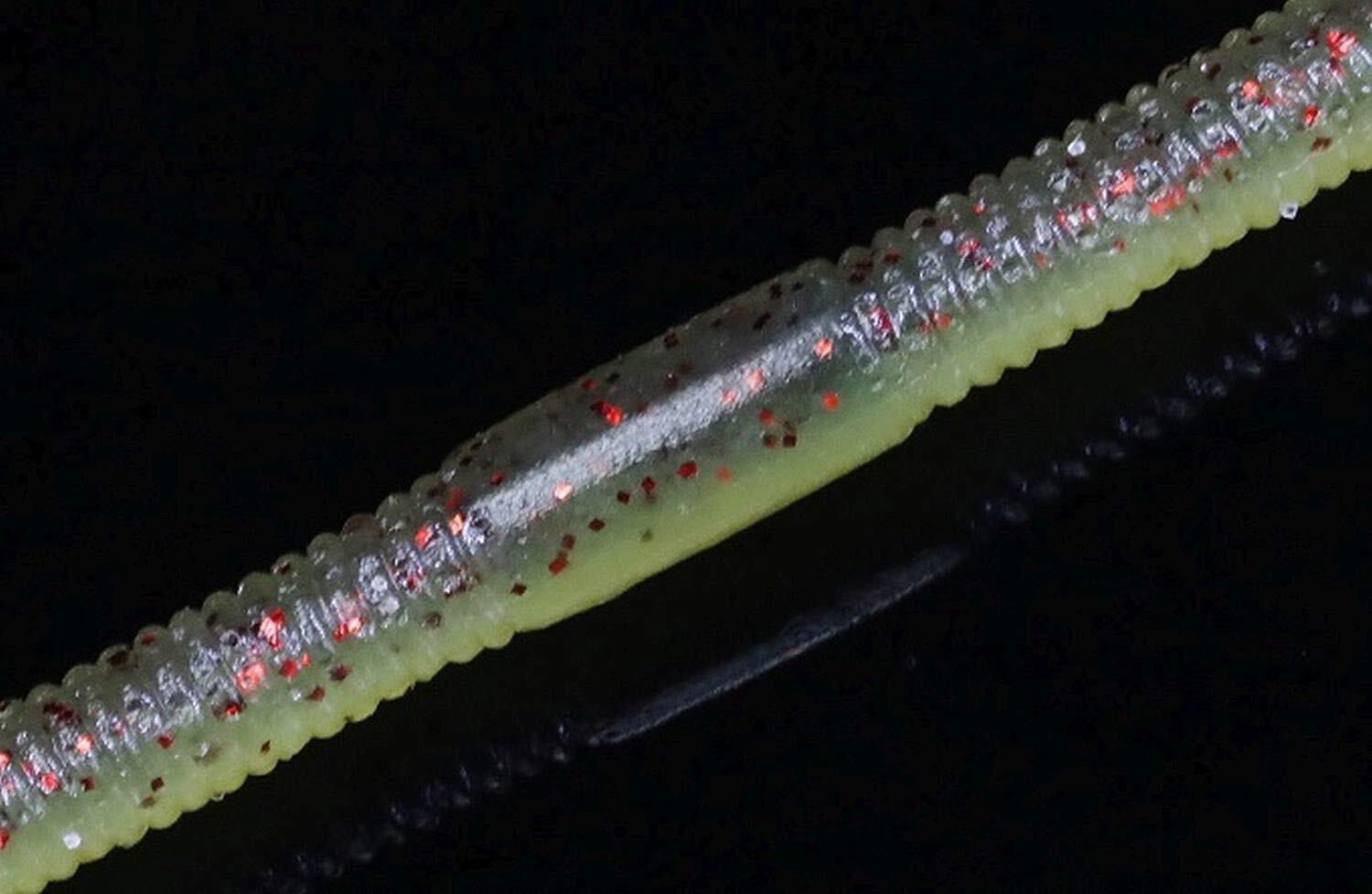 JACKALL/ジャッカルフリックシェイク◆入り数:8本入り◆サイズ:4.8inch今までの常識を覆す曲がったワーム、フリックシェイクに3.8インチが登場。ジグヘッドのワッキーリグ専用。左右非対称のボディが不規則アクションを起こす。ストレートワームにあえてカーブをつけるというコンセプトから生まれる複雑で艶めかしいロールの効いたアクションでバスを魅了します。シェイク時はもちろん、フォール中は両端から生まれる微波動はさらにアピール力を増し、神経質なビッグバスのバイトを誘発します。