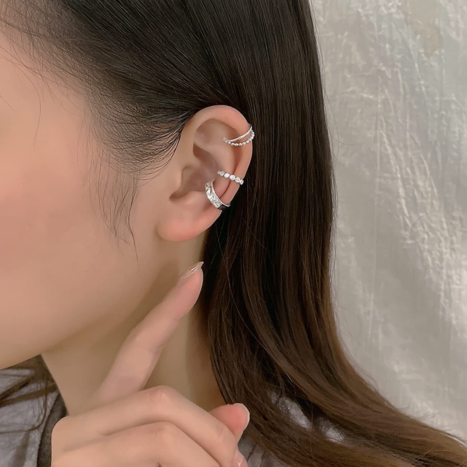 Coollooda シルバー イヤーカフ【3個入り】フェイクピアス ノンホールピアス 耳掛け 挟む 軟骨ピアス 片耳用 レディース イヤリング ピアス穴不要 誕生日 記念日 3種類