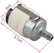 高品質の金属及び羊毛で作られる、プラスチック製の燃料フィルターよりも安定しており、燃料が無くなるまで安定して作業が出来ます。草刈り機 刈り払機 チェンソーによく使われる部品です。園林伐採挽割り、小型のチェーンソーなどに適合します。草刈機の調子が悪く困ったお客様が、この燃料フィルターを交換してから草刈機は調子よく動いてます。