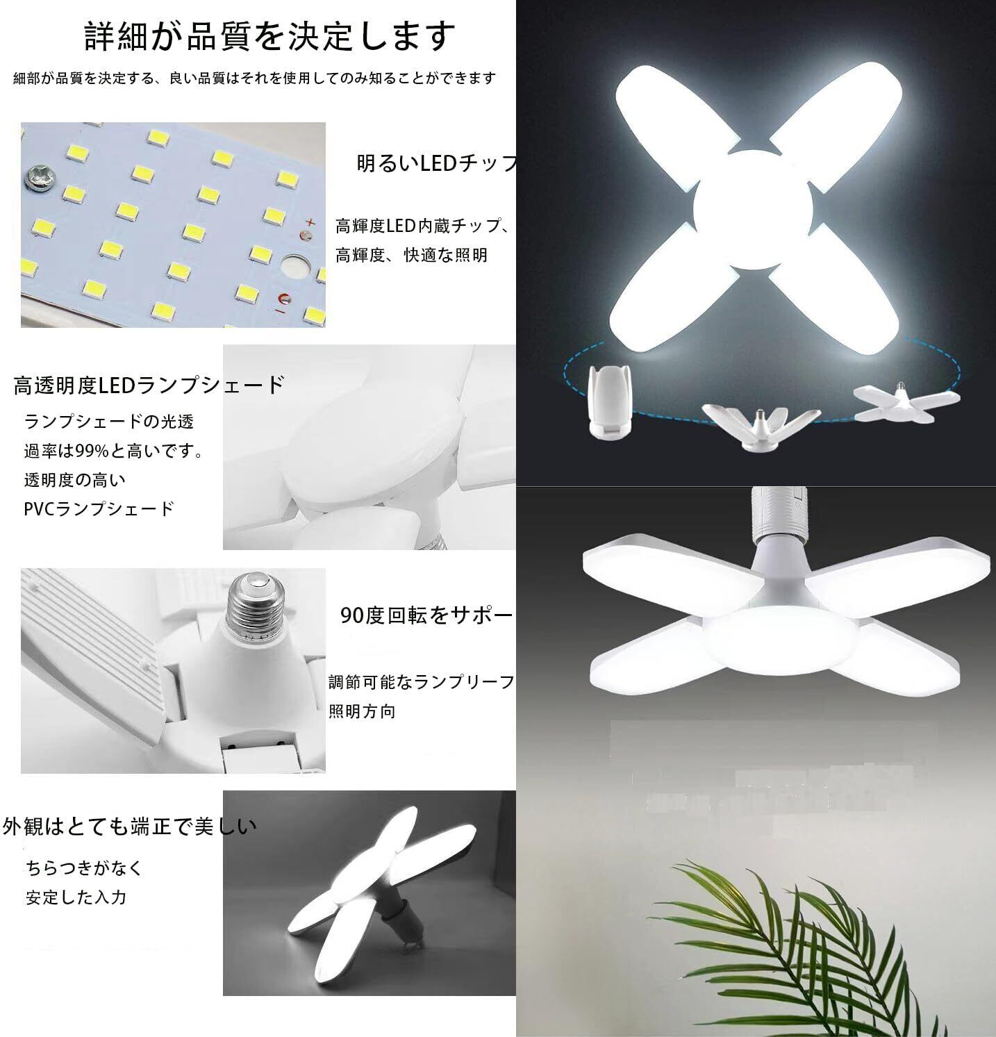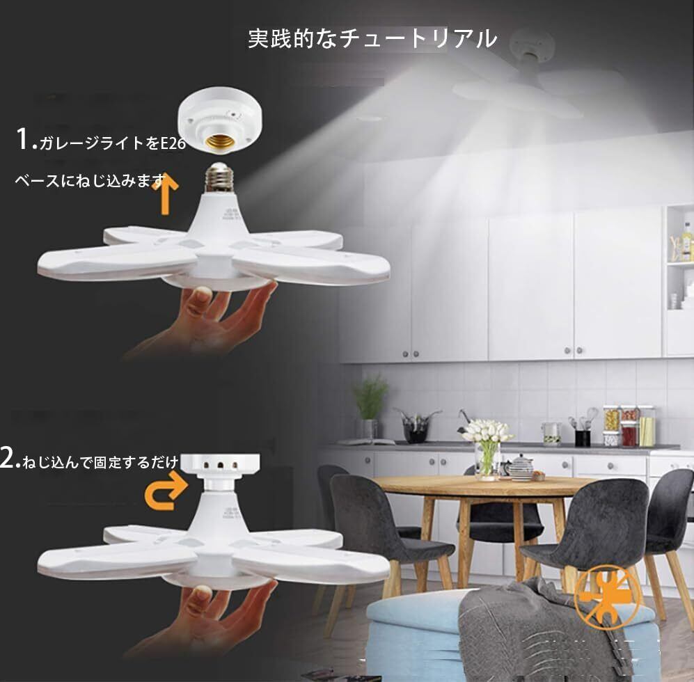 【折りたたみ式&角度調整可能】:ペンダントライトには折りたたみ式LEDパネルが4つあります。上下0-90°自由に調整して、照明角度が最大360°に達し、通常のLEDガレージライトより照明範囲も広くなります。