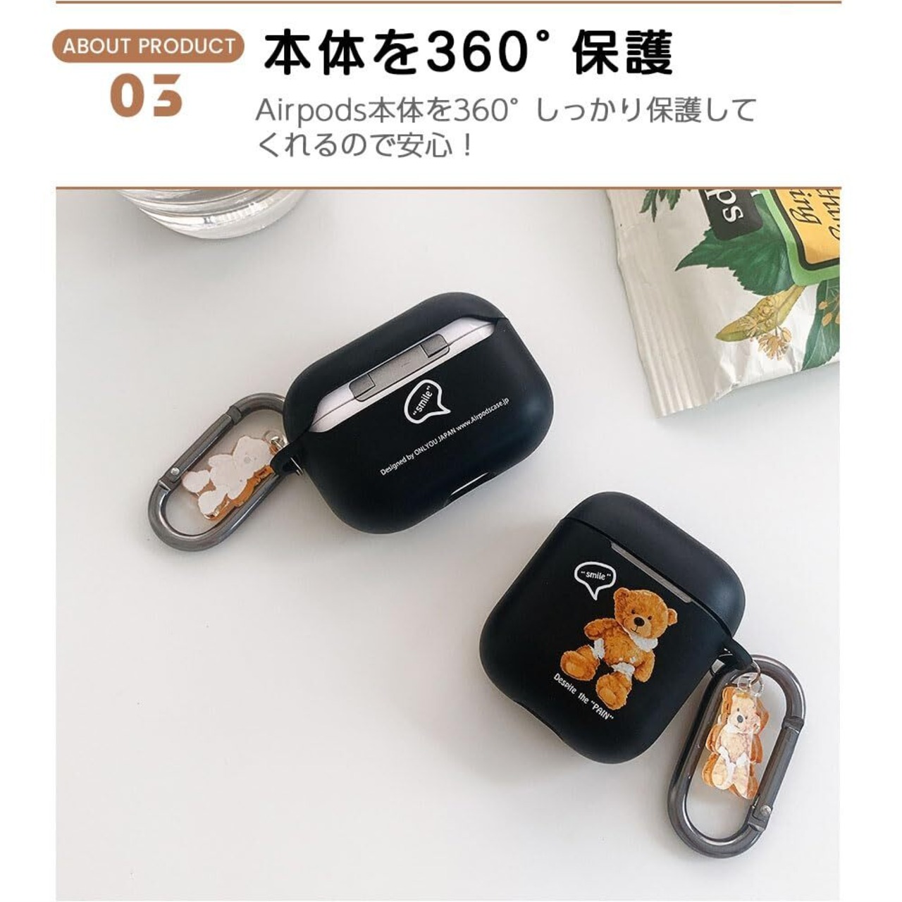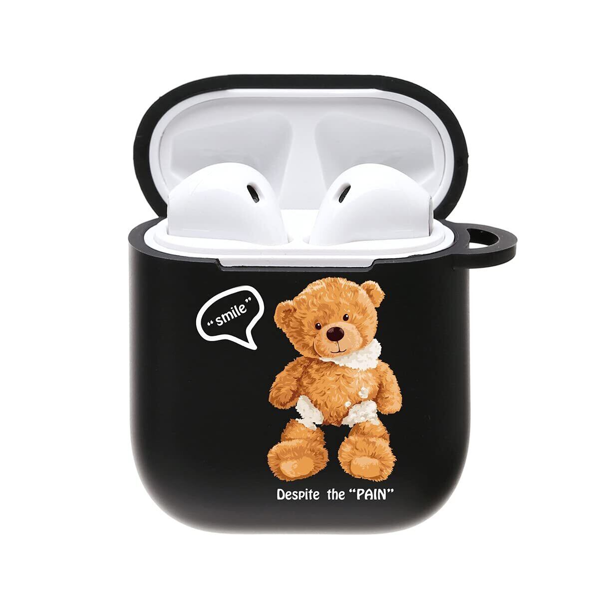 【在庫処分】ONLYOU Airpods 用 ケース 第2世代 韓国 第1世代 TPU テディベア くま クリア デザイン エアーポッズ カバー かわいい カップル お揃い イヤホンケース カラビナ フック (AirPods(第1/2世代) ブラック) | ニコニコSHOP