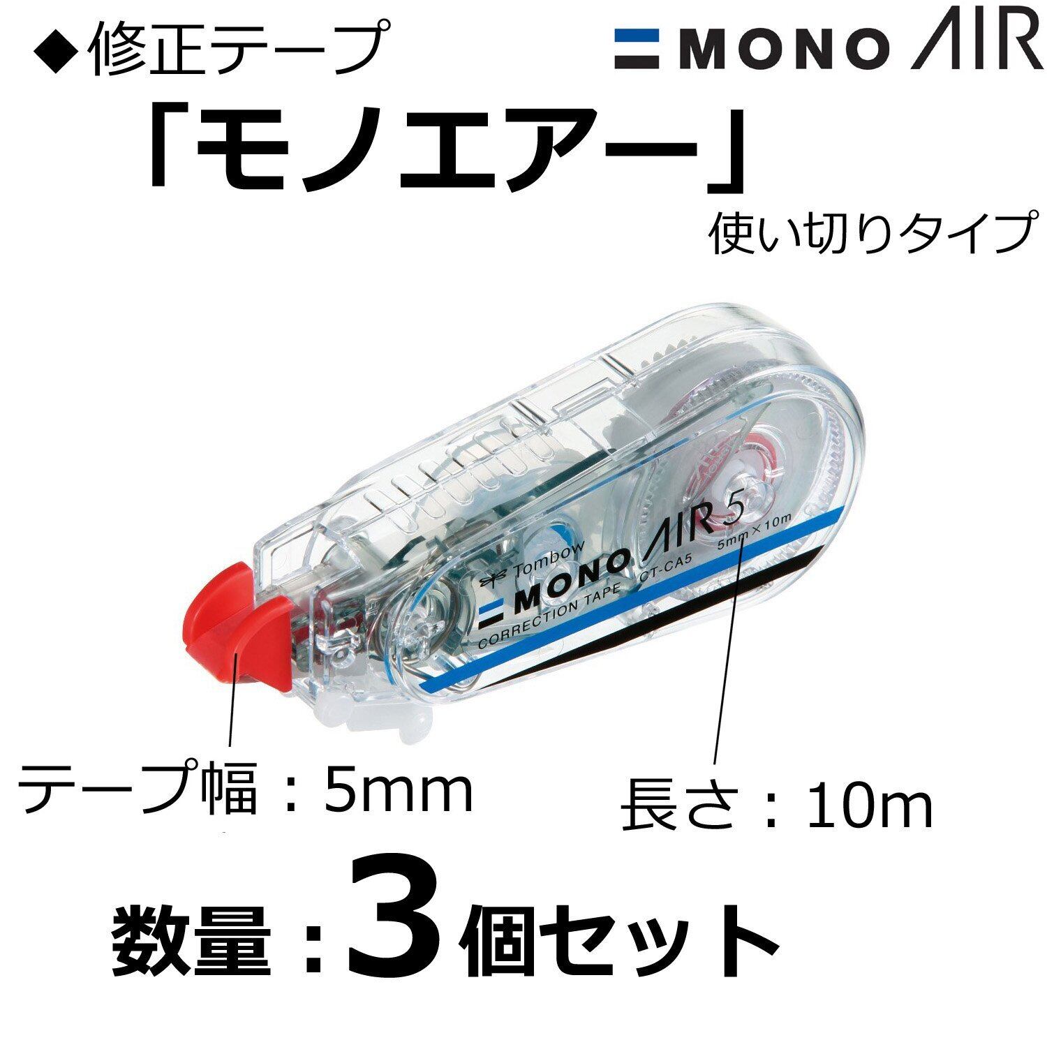 トンボ鉛筆 修正テープ 5mm MONO モノエアー (軽いタッチ・高密着テープ) 使い切りタイプ10m 3個 KPB-325 (CT-CA5×3)
