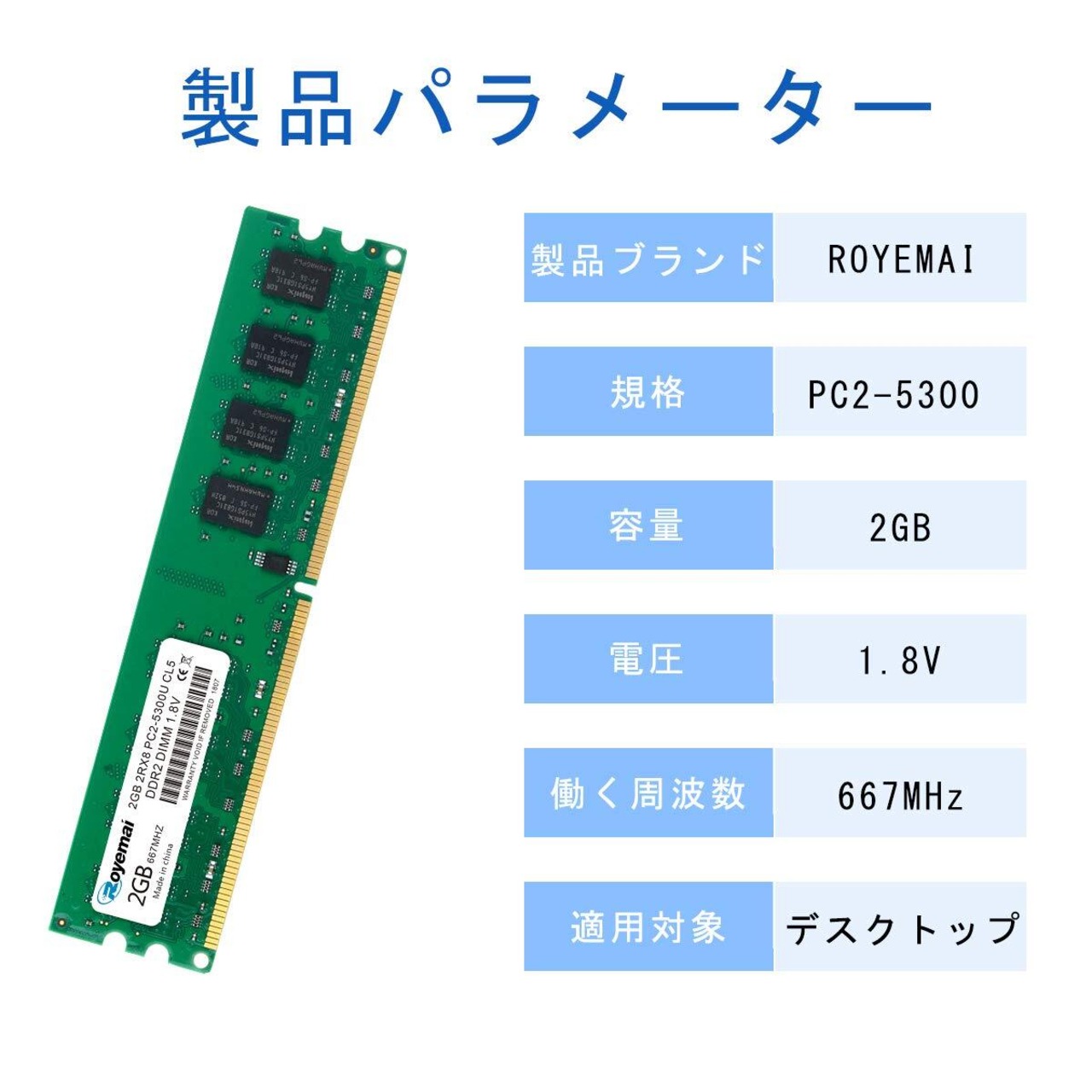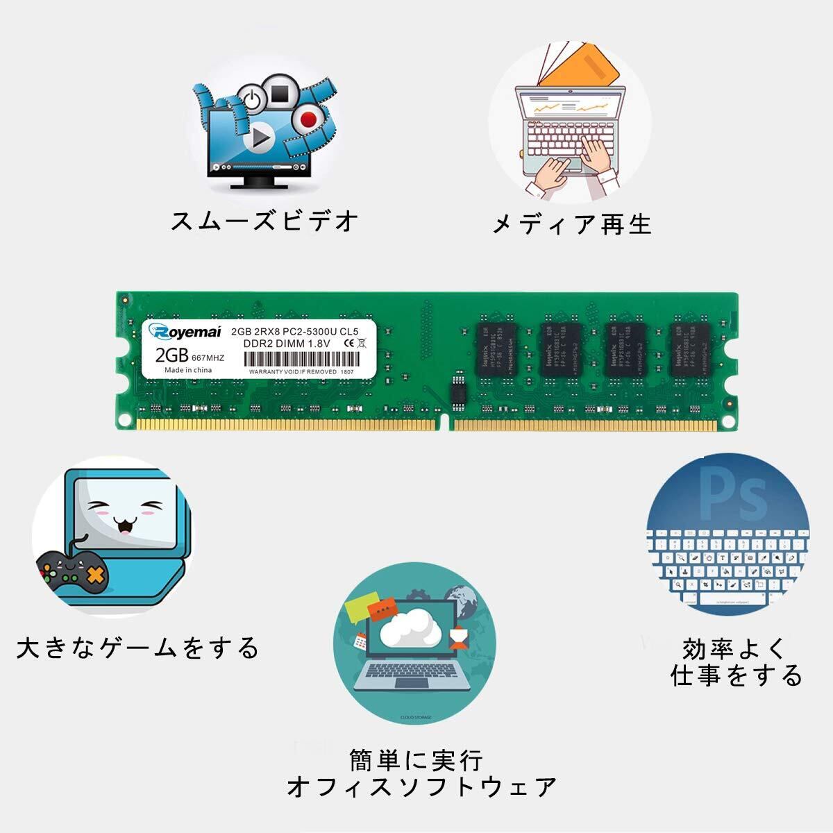 4GB DDR2 667MHz 667 PC2-5300 5300U 2GB×2枚 デスクトップPC用 メモリ 1.8V CL5 Non-ECC RAM Memory