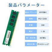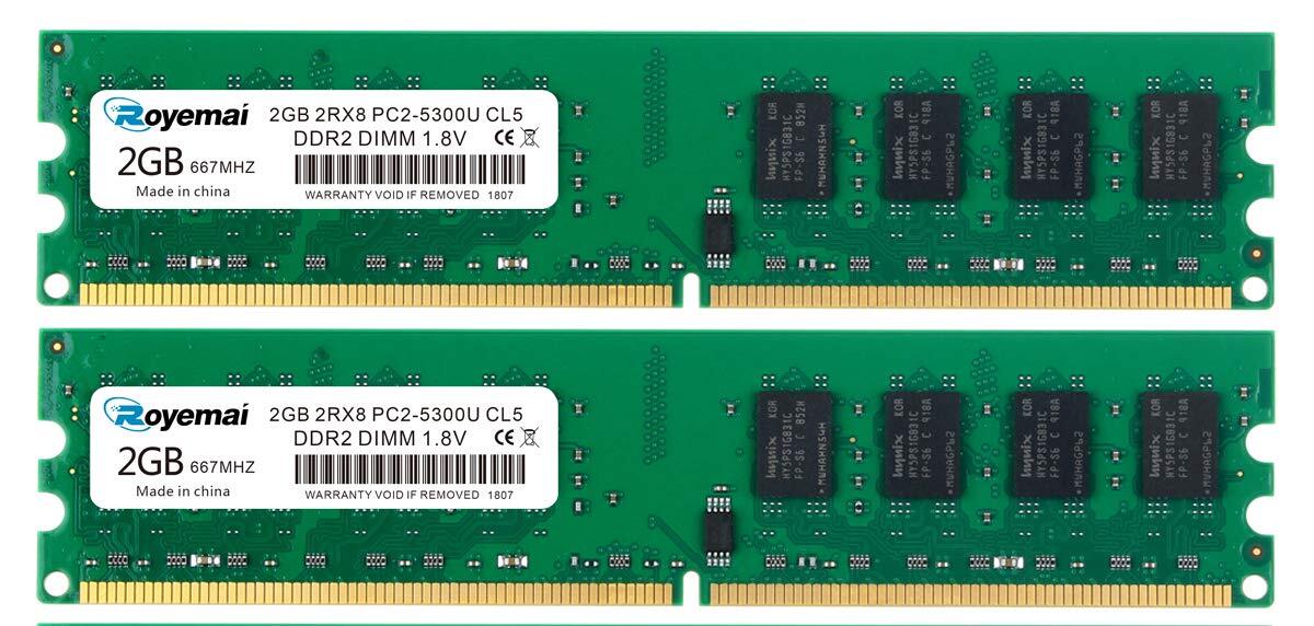 【人気商品】4GB DDR2 667MHz 667 PC2-5300 5300U 2GB×2枚 デスクトップPC用 メモリ 1.8V CL5 Non-ECC RAM Memory