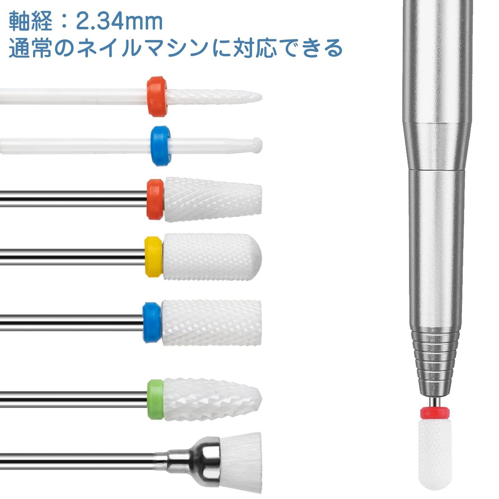 【人気商品】Madenia ネイルビット ネイルマシン用 研削ビット 研削ネイルヘット 研磨用ドリルビット 爪磨き ネイルケア用 甘皮処理 研磨ビットセット ネイルドリルビット セラミック 2.34mm 7PCSセット | ニコニコSHOP