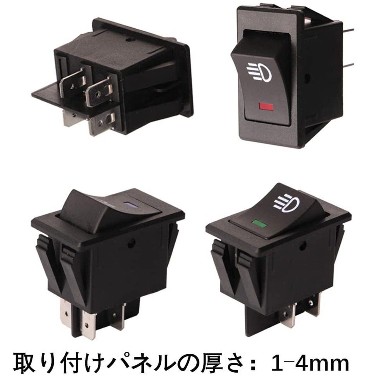 【在庫処分】Kiligen 4個の12VDC / 35A車の自動LEDフォグライトロッカートグルスイッチ、4ピンON-OFFフォグライト、DRL、LEDライトバー用の赤青緑黄LEDインジケータライト | ニコニコSHOP
