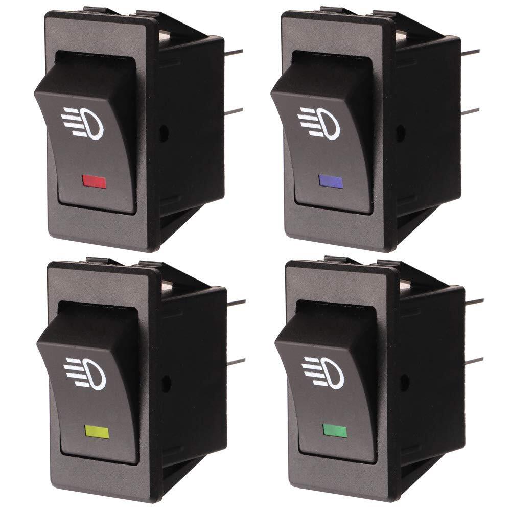Kiligen 4個の12VDC / 35A車の自動LEDフォグライトロッカートグルスイッチ、4ピンON-OFFフォグライト、DRL、LEDライトバー用の赤青緑黄LEDインジケータライト