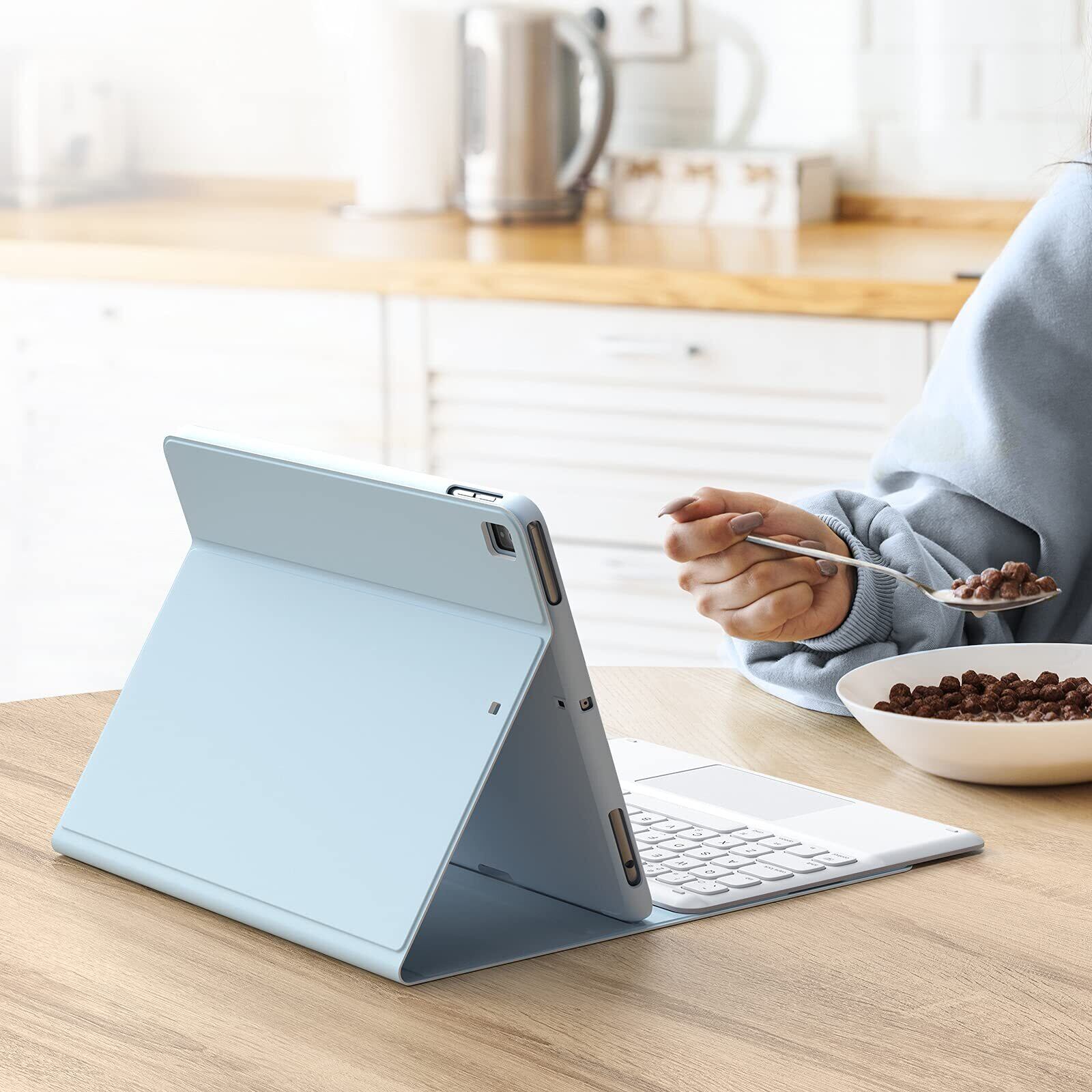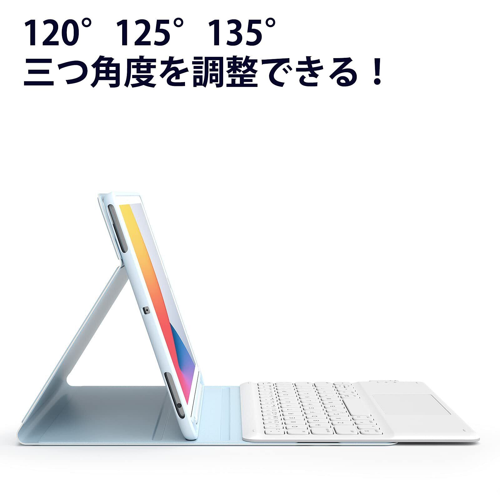 iPad 9世代 キーボード iPad 8世代 キーボード ケース タッチパッド付き ipad 10.2 キーボード ケースiPad7世代キーボード[2021/2020/2019モデル] BTキーボードカバー 脱着式 多角度調整 傷つけ防止 耐久性 [ペンシルホルダー付き] 最新型スマート ケースキーボード 丸いキー可愛いキー マグネット付きワイヤレスアイパッド10.2インチキーボード ブルー