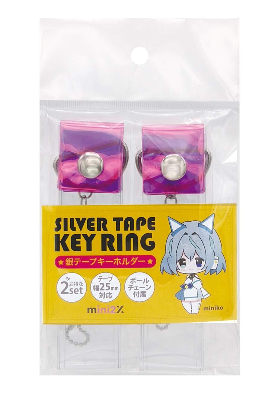 mini2x 銀テープカバー 簡単収納 キーホルダー ストラップ 25mm幅対応 2個セット (ピンク)