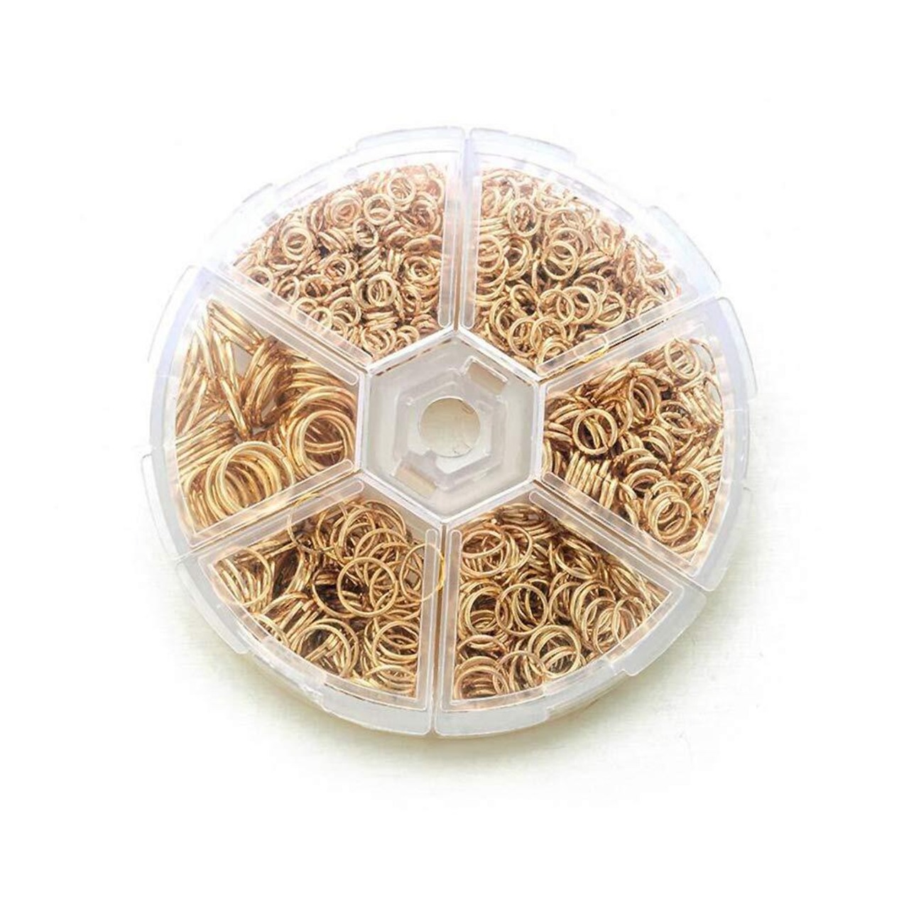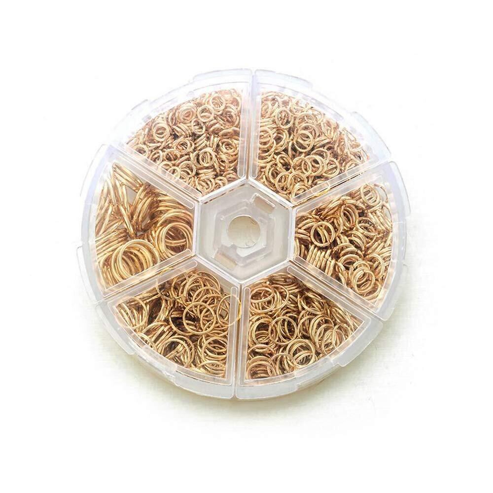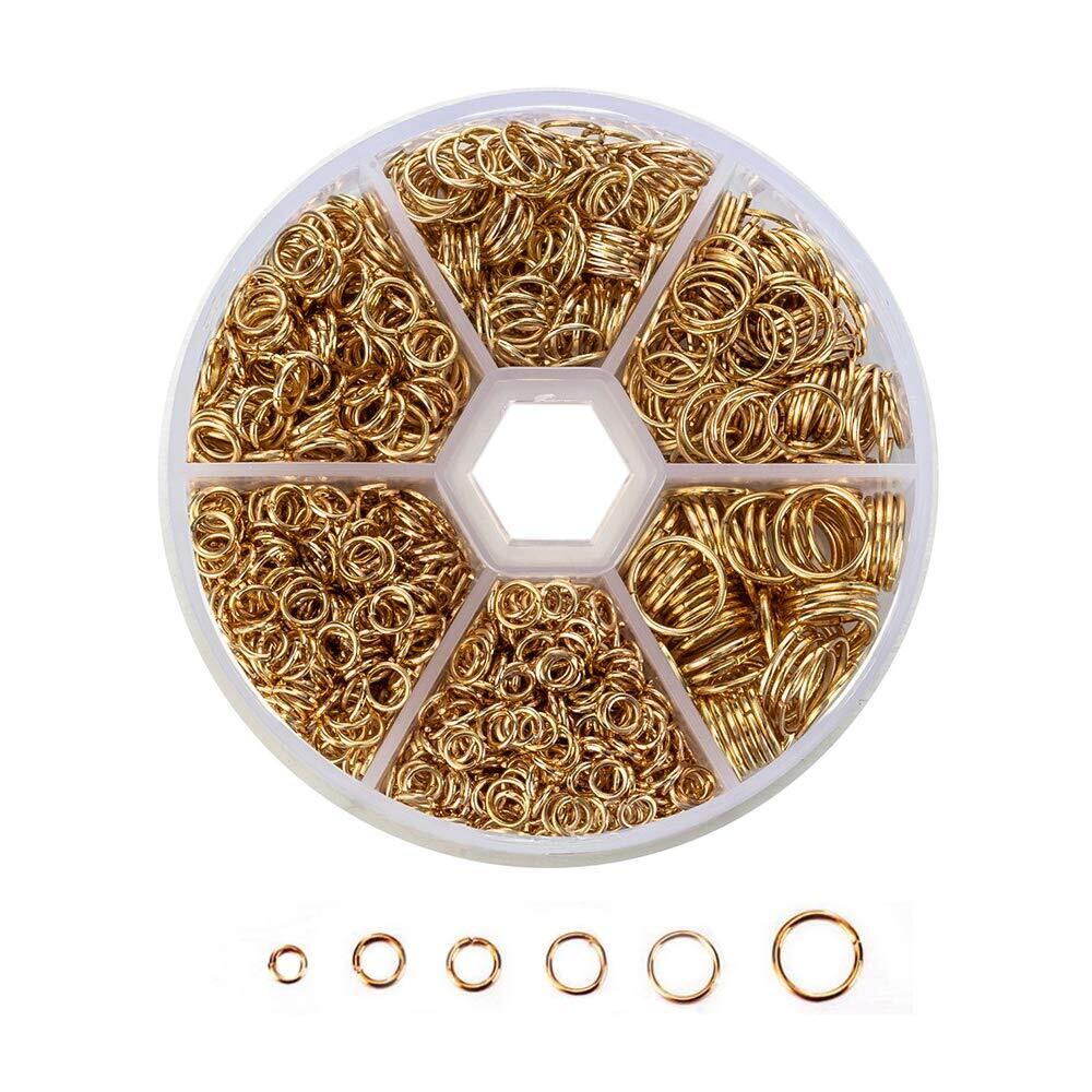 YFFSFDC 丸カン 約1390個入り 6サイズ 直径4mm/5mm/6mm/7mm/8mm/10mm ゴールド アクセサリー パーツ リング 金具セット 基礎パーツ クラフト用品 DIY ハンドメイド 手芸 収納ケース付き (ゴールド)