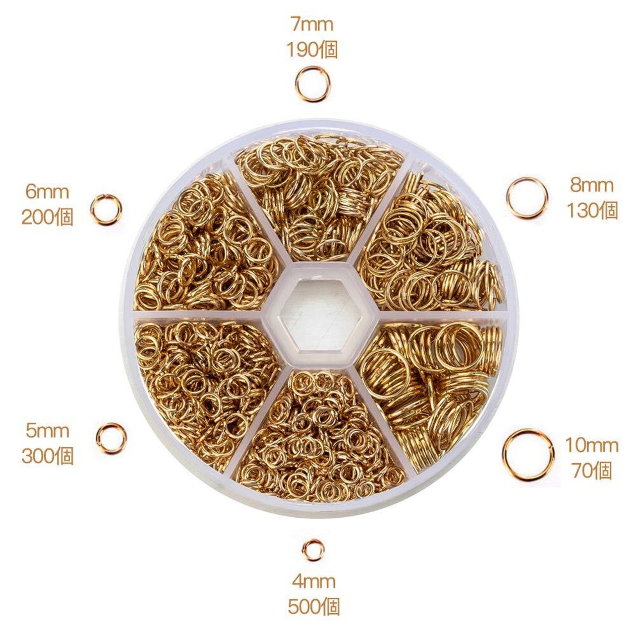【新着商品】YFFSFDC 丸カン 約1390個入り 6サイズ 直径4mm/5mm/6mm/7mm/8mm/10mm ゴールド アクセサリー パーツ リング 金具セット 基礎パーツ クラフト用品 DIY ハンドメイド 手芸 収納ケース付き (ゴールド) | ニコニコSHOP