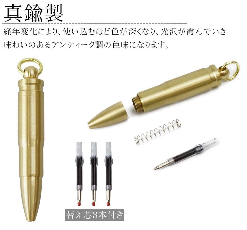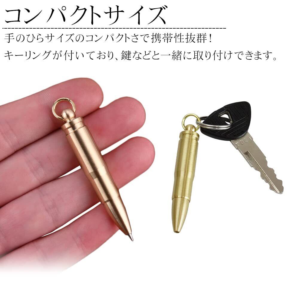 prendre キーホルダー型 ボールペン 真鍮製 替え芯3本付き コンパクト 小型 携帯 ペン 回転式 ツイスト式 PR-BULLETPEN